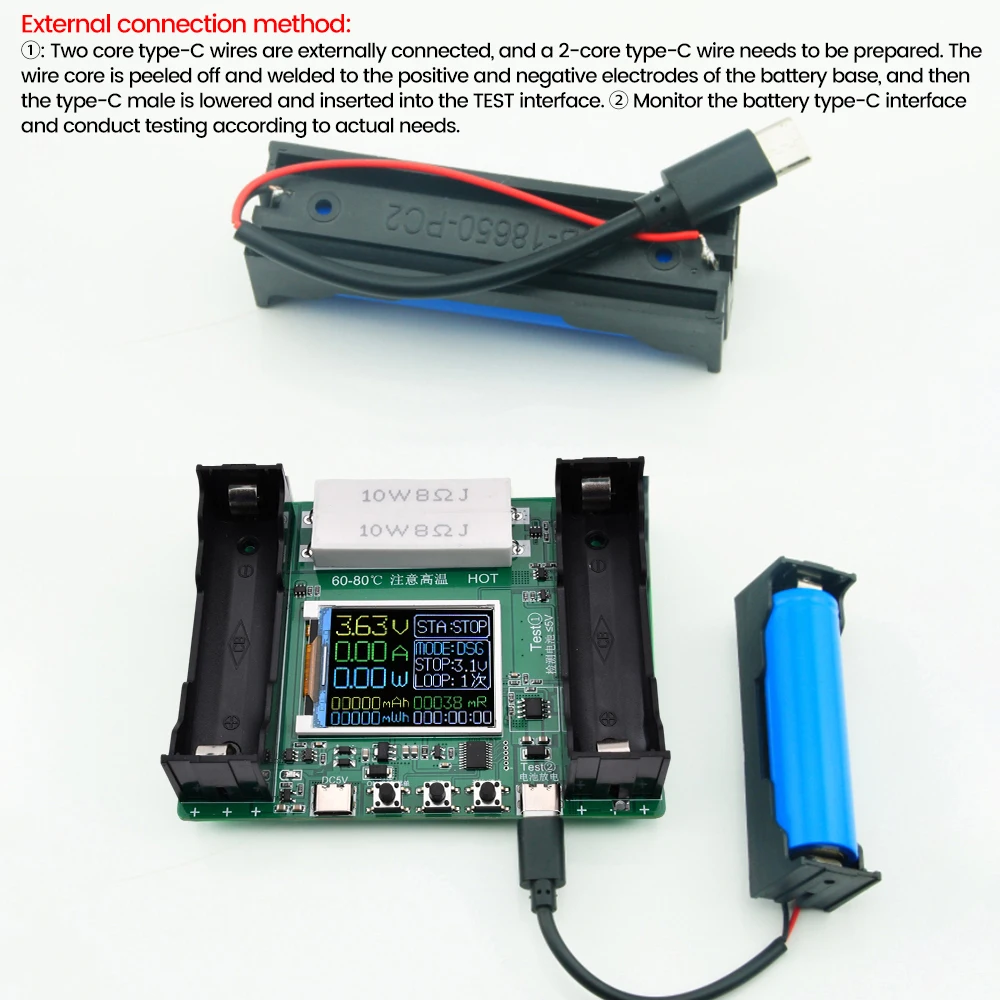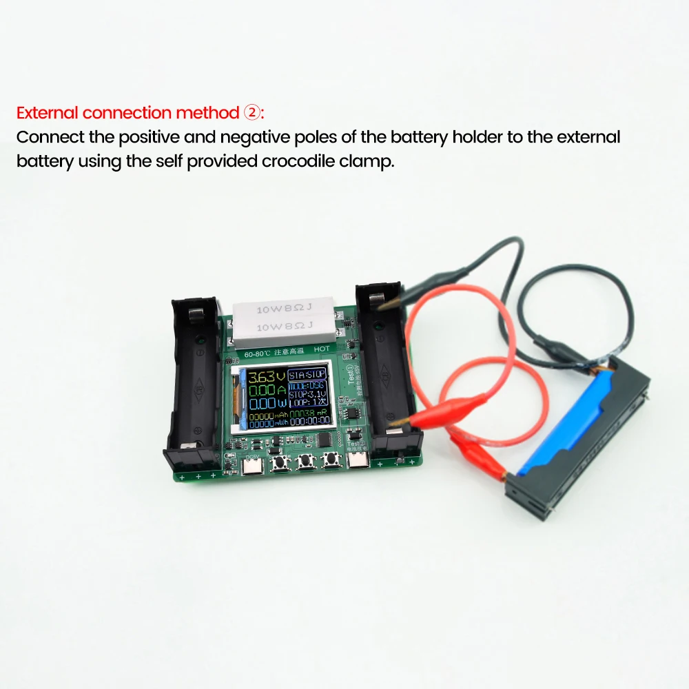 Experience reliable and accurate battery testing with this advanced digital device designed for lithium-ion batteries. Featuring a vibrant color LCD display, sleek green circuit board, and a compact ergonomic design, this tester offers professional-grade measurement for 18650 and 21700 batteries. Its dual power options—Type-C input or an 18650 battery—ensure versatile operation in various settings. The device supports multiple functions including capacity measurement, internal resistance testing, automatic and cyclic charging modes, and adjustable stop discharge voltage from 2.5V to 3.5V. Designed for safety and efficiency, it includes built-in programs that automatically manage cycles and temperature protection, making battery analysis easy and precise. Whether you’re a hobbyist or a professional, this tester enhances your workflow with its reliable, features-rich performance.