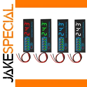 Imagine effortlessly monitoring your battery voltage and charge level with this sleek, compact LED indicator board. Its slim rectangular black housing, measuring just 46mm x 15mm x 3mm, combines minimalist style with high functionality. The vibrant LED display provides large, bright digits in red, green, blue, or white, clearly indicating voltage levels up to 55V and charge status through segmented battery icons. The colorful graphics are visually appealing and easy to read, making battery management intuitive. The device’s simple interface includes a power button for quick toggling and settings adjustments, ensuring your monitoring is always precise. Its versatile design suits a range of batteries, including lithium-ion, iron lithium, or acid types, perfect for professionals and enthusiasts alike.