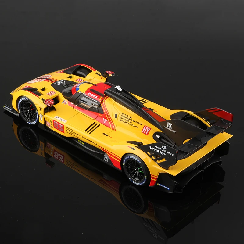 The Bburago Ferrari 499P No.83 model is a stunning representation of automotive excellence, designed for collectors and enthusiasts alike. Its vibrant yellow body is complemented by striking red decals, bringing authenticity and flair that will make it a centerpiece in any display. Measuring 27 cm in length, 11 cm in width, and 6.5 cm in height, this 1:18 scale diecast model is crafted from high-quality alloy with rubber tires and ABS plastic parts, ensuring durability and a premium feel. Bring home this piece of racing history and let it transport you to the thrilling world of Le Mans 24-hour racing.