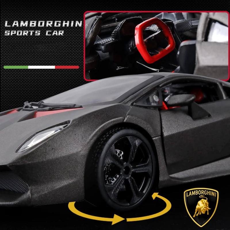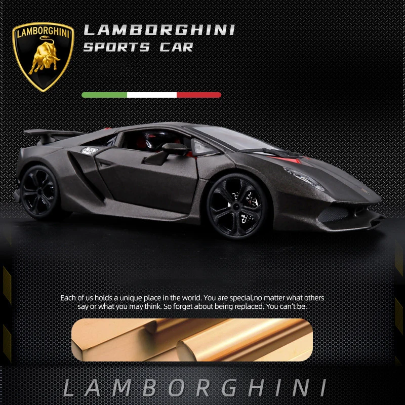 - Realistic design replicates the Lamborghini Sesto Elemento's sleek lines, sharp angles, and signature features for an impressive display.