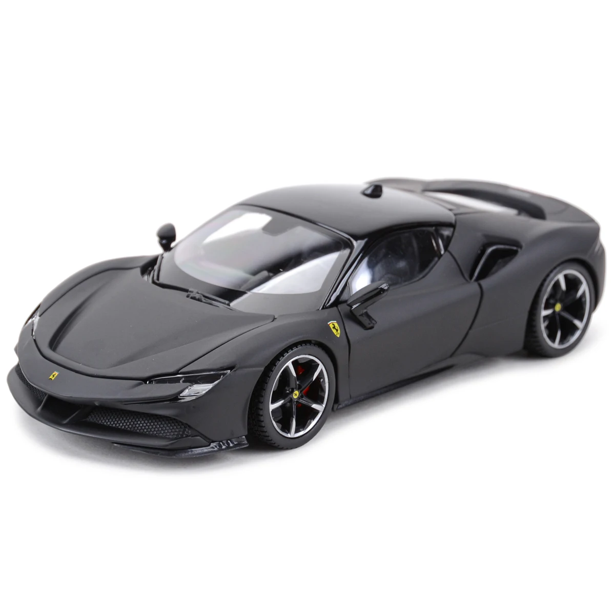 Imagine adding the stunning Bburago 1:24 scale model of the Ferrari SF90 Stradale to your collection. This mesmerizing piece, finished in sleek matte black, captures the aggressive aesthetics of the iconic sports car. The detailed die-cast metal body and carefully crafted plastic components enhance its realism. With features like opening doors, hood, and trunk, this model beckons you to explore its intricately designed black interior. Ideal for collectors and enthusiasts alike, you will take pride in showcasing this remarkable automotive representation in your home.