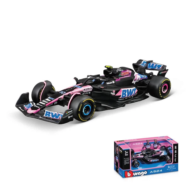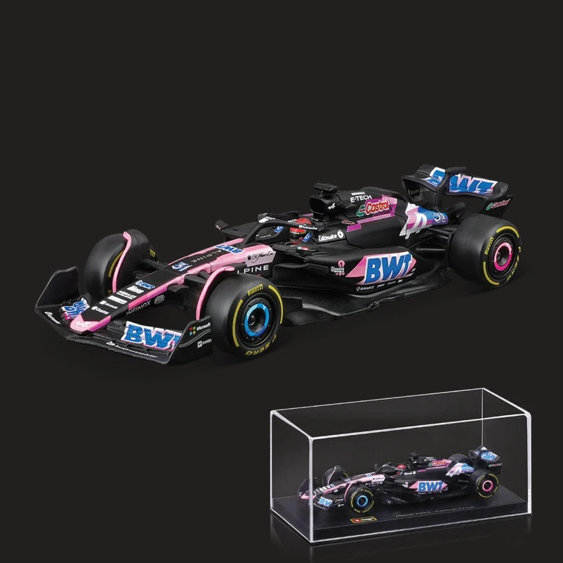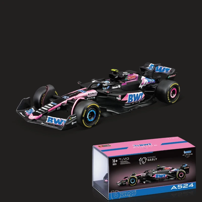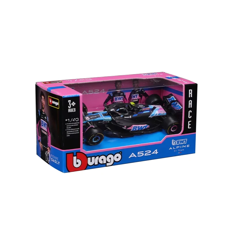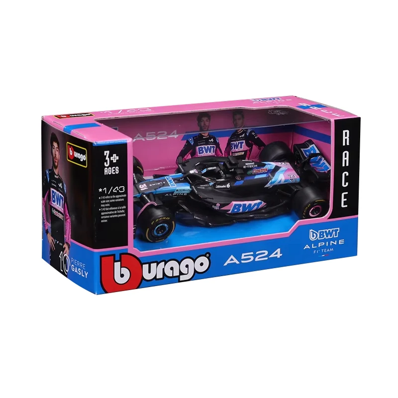Imagine adding this stunning Bburago 1:43 Alpine F1 Team A524 model to your collection. With its sleek black body complemented by vibrant pink and blue accents, this miniature diecast vehicle reflects the awe-inspiring design of modern Formula 1 cars. The intricate details, from the aerodynamic front wing to the precisely designed wheels, will catch the eye of any enthusiast. Picture yourself showcasing this replica on your shelf, sparking conversations with fellow collectors. Every glance reveals the artistry poured into its creation, making it more than just a model—it's a statement piece that embodies your passion for racing excellence.