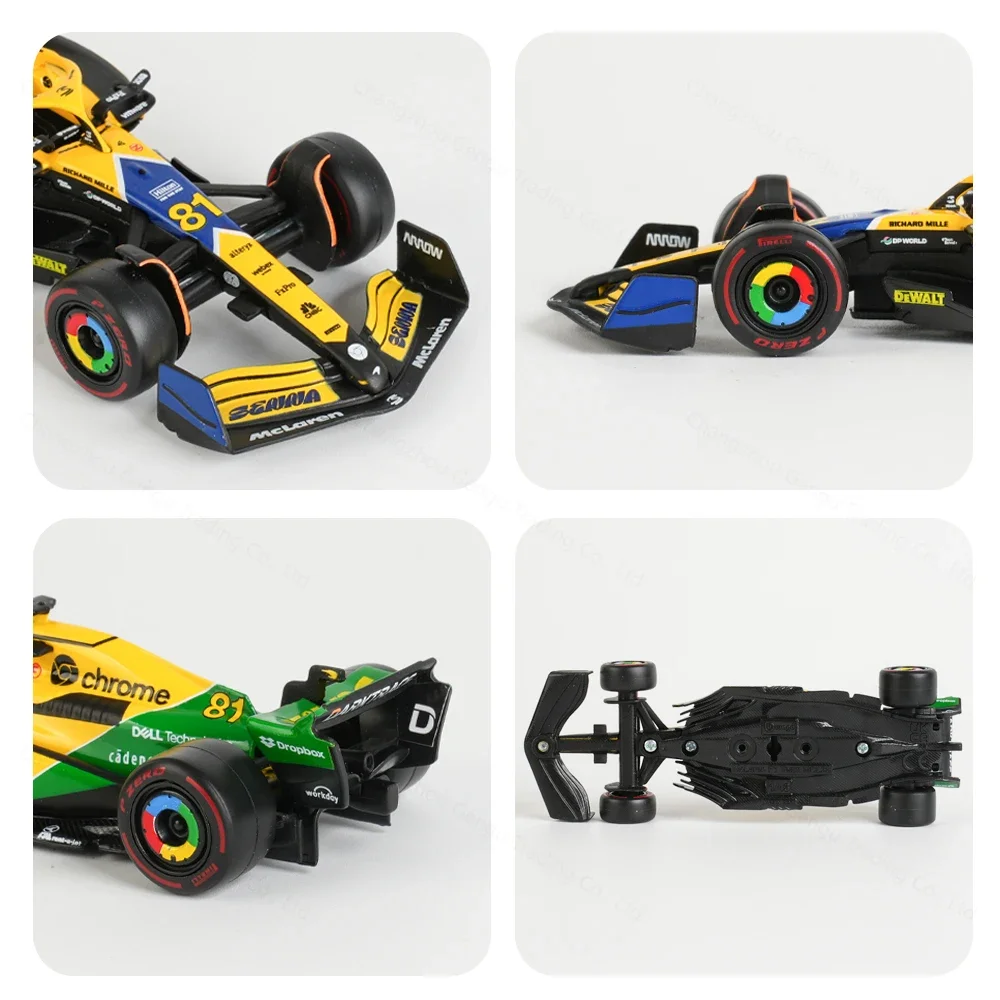 This die-cast model represents the McLaren 2024 MCL38 Formula 1 car, designed to captivate racing enthusiasts and collectors alike. The vibrant bright yellow body, adorned with sleek black and blue accents, reflects the dynamic spirit of Formula 1 racing. Accurately scaled at 1:43, it offers a true-to-life experience with dimensions of 13.1 cm in length, 4.7 cm in width, and 2.8 cm in height. With intricate details, such as the easily recognizable number “81” and authentic sponsor logos, this model encapsulates the essence of performance racing. Perfect for display, this collectible brings the thrill of the track right into your home.