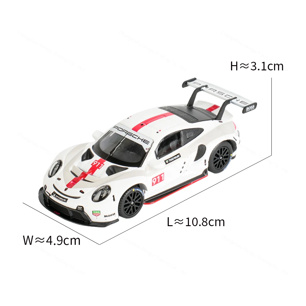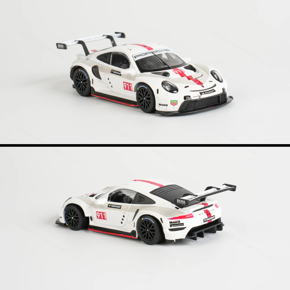 Immerse yourself in the world of racing excellence with the Bburago 1:43 Porsche 911 RSR collectible model. This stunning die-cast vehicle is crafted with a sleek white finish accentuated by bold red racing stripes. Every detail, from the intricately designed black front grille to the iconic Porsche logo, reflects the model's heritage. You can admire the glossy black wheels and pronounced rear wing, all while appreciating its robust die-cast metal construction. Measuring approximately 10.8 cm in length, 4.9 cm in width, and 3.1 cm in height, this model is not just a collectible; it's an invitation to relive the thrill of motorsport in your very own space.
