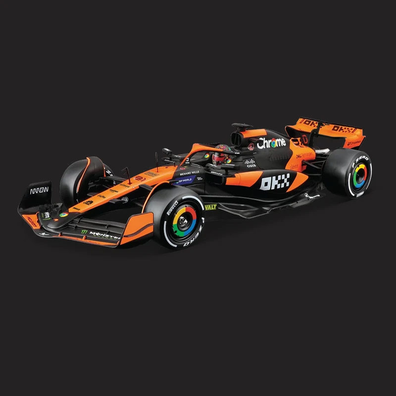 Imagine owning a stunning 1/24 scale model of the Bburago McLaren MCL38 F1 car, crafted with exquisite attention to detail. This sleek model, featuring a vibrant orange body with striking black accents, captures the true essence of Formula 1 engineering. As you display it, the realistic sponsor logos and intricate design elements, including the colorful rims with a rainbow pattern, will undoubtedly impress both fans and collectors alike. Visualize that moment when your friends admire this brilliant piece, recognizing it as a must-have treasure for any motorsport enthusiast. Experience the thrill of Formula 1 right in your home with this exceptional model.