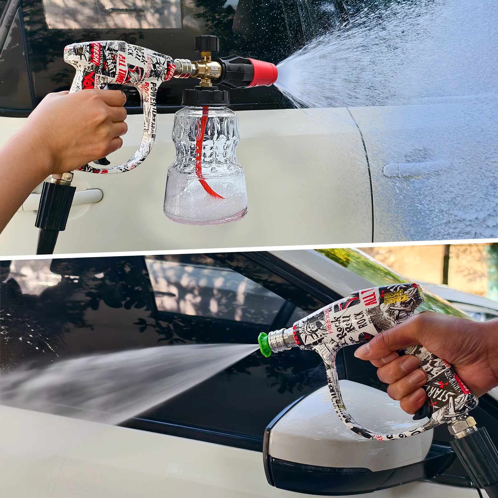 - The pressure washer features a compact, impact-resistant PP+glass fiber housing with vibrant North American-themed graphics for a trendy appearance and long-term durability.