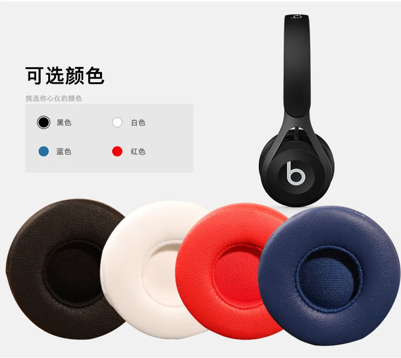 - High-quality leather cushions in four vibrant colors—black, white, red, and blue—adding style and comfort to your Beats EP headphones.
