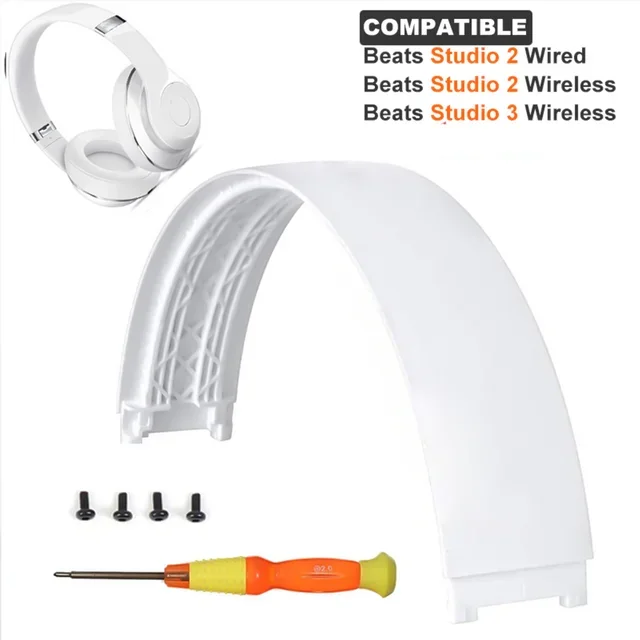 Enhance your Beats Studio 2.0 or Studio 3 headphones with this premium replacement headband. Crafted from high-quality plastic, it features a sleek, curved design for a comfortable fit. The headband includes a durable metallic ring interface for added stability and secure screw attachment, ensuring long-lasting use. Available in vibrant and classic colors such as titanium gray, dark blue, black, white, red, and gold, you can easily match your headphones to your style. Designed specifically for the Studio 2.0 and 3.0 models, the headband’s adjustable width caters to different preferences, with the Studio 3 having a wider beam for increased coverage and comfort. Perfect for replacing worn or lost parts, this headband updates your headphones with a fresh, stylish look and reliable performance.