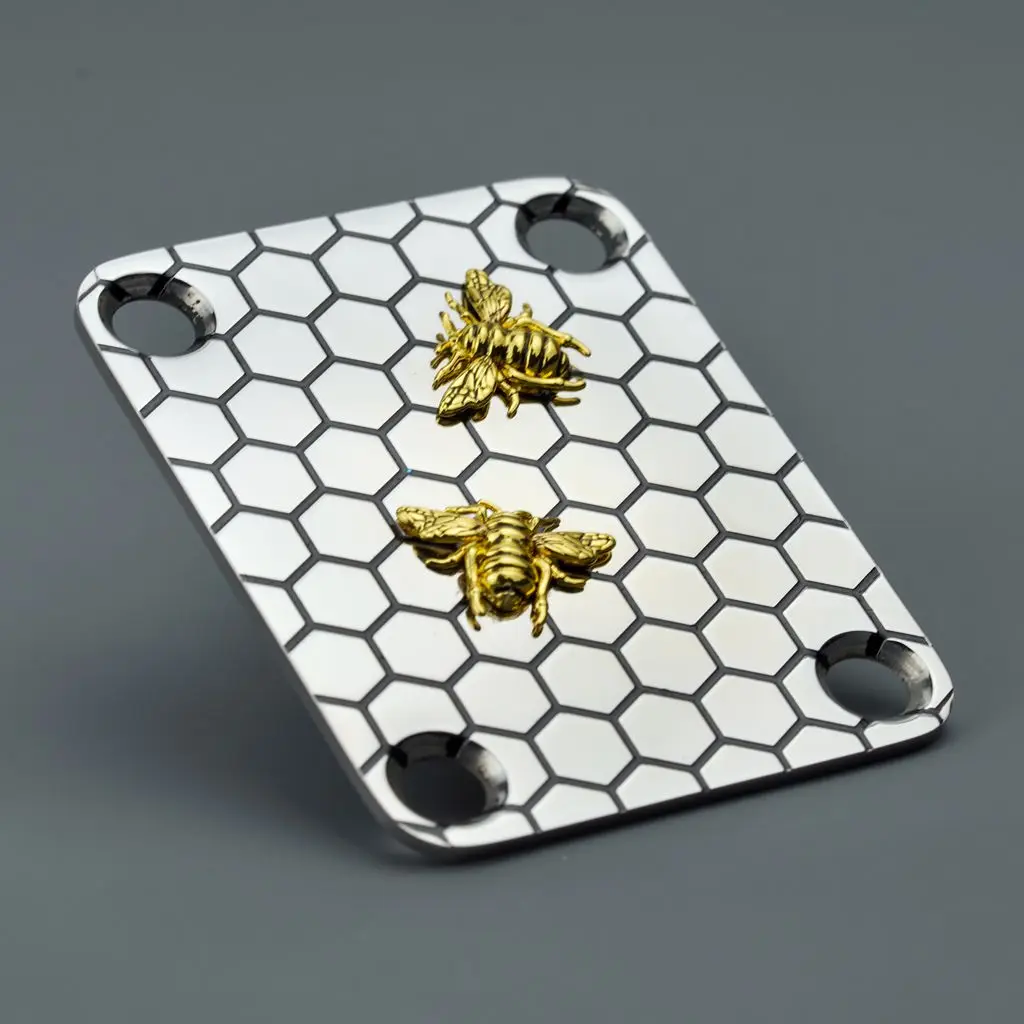 Elevate your guitar's aesthetics and performance with this Electric Guitar Neck Plate featuring a unique Bee Pattern. Designed for the serious musician, this neck joint plate not only enhances your instrument's look but also ensures a secure and stable connection. Crafted with quality in mind, this plate will seamlessly fit onto your electric guitar or bass, making it an essential accessory for your musical journey. Picture yourself enjoying your favorite tunes, knowing your instrument is outfitted with this stylish and functional addition. Whether you're on stage or in the studio, this neck plate will boost both your confidence and creativity.