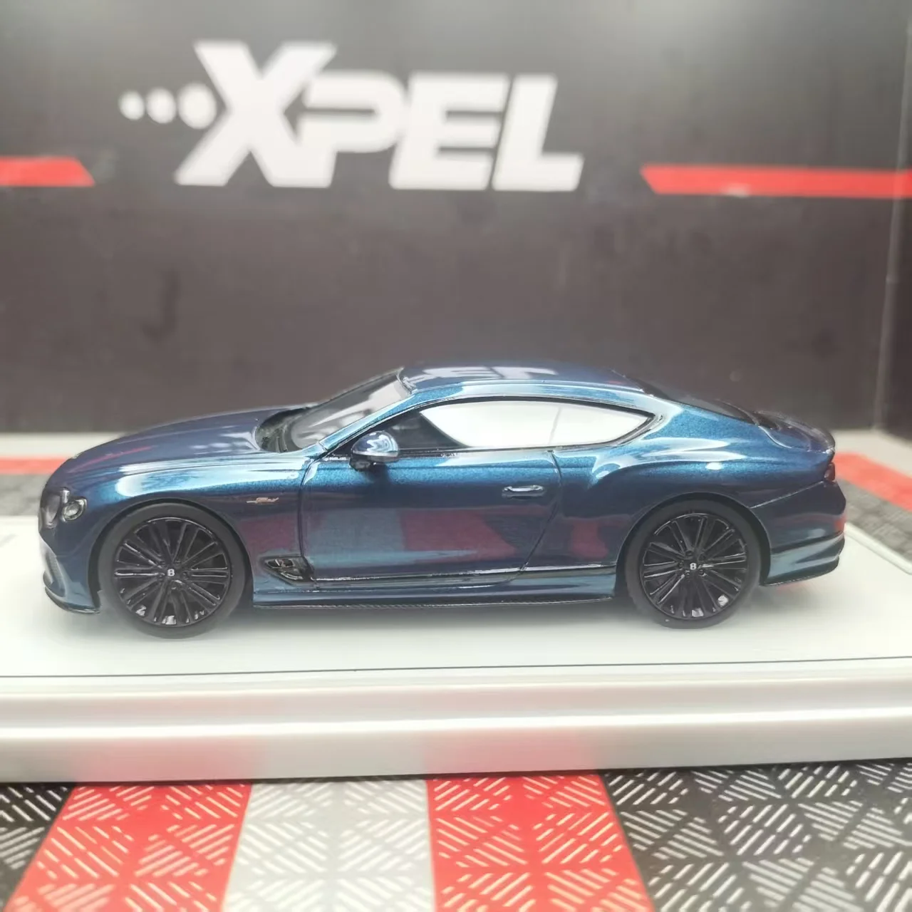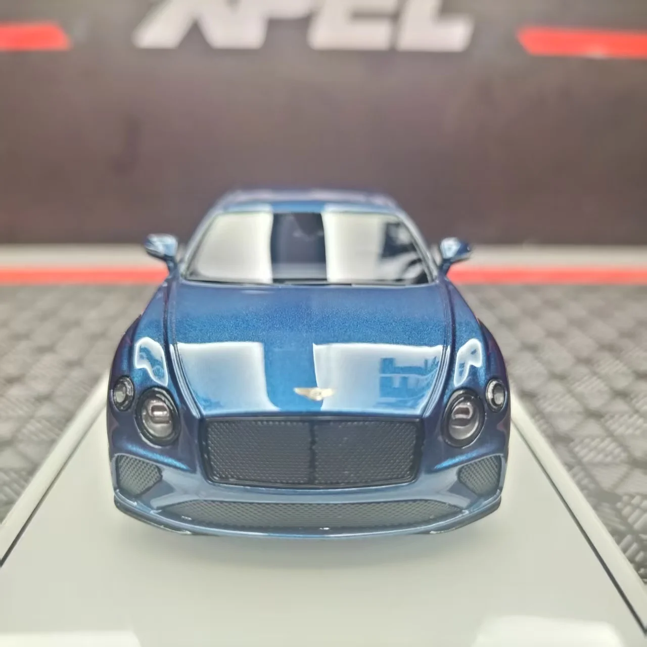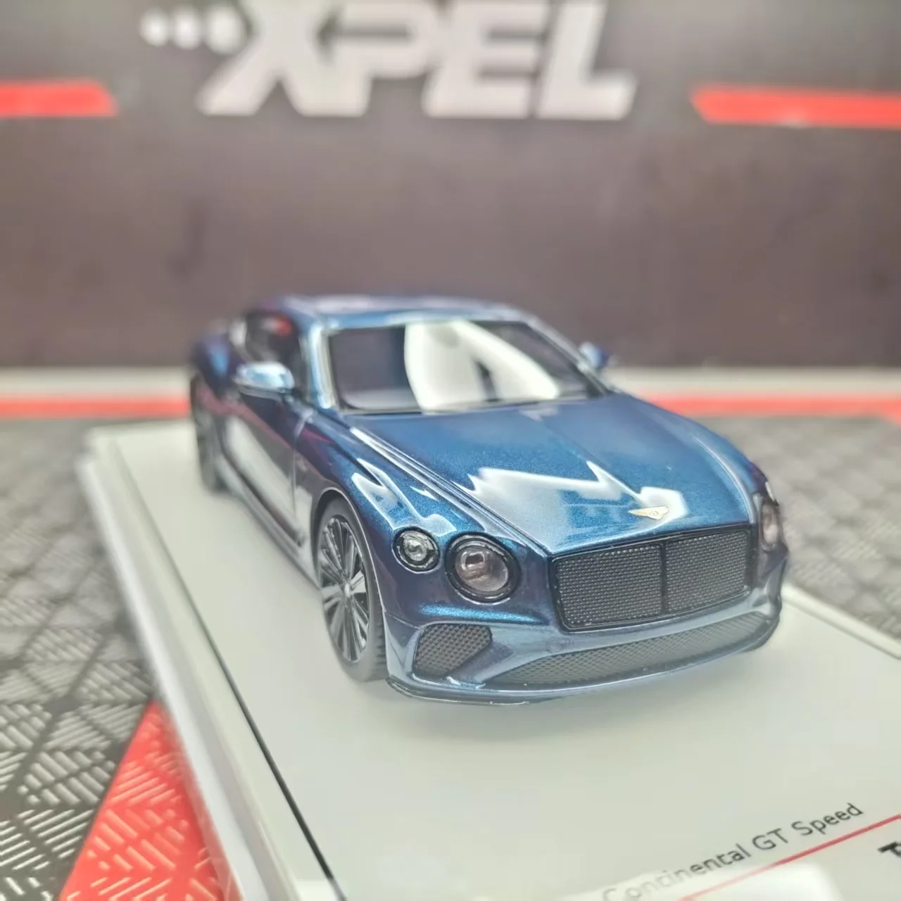 Imagine elevating your collection with this stunning 1:43 scale Bentley Continental GT 2022 model. Crafted with meticulous attention to detail, this luxurious resin replica captures the sleek, aerodynamic curves and sophisticated design of the real vehicle. Its deep, rich blue hue with a glossy metallic finish vividly reflects light, highlighting every contour and accent. The model features realistic elements like distinctive round headlights, a large black grille, multi-spoke rims, and tinted windows, enhancing its authentic appearance. Set on a display shelf, it transforms any space into a showcase of elegance and craftsmanship, perfect for enthusiasts and collectors who appreciate fine automotive artistry. Its fully enclosed resin body ensures durability and detailed realism, making this piece a timeless addition.