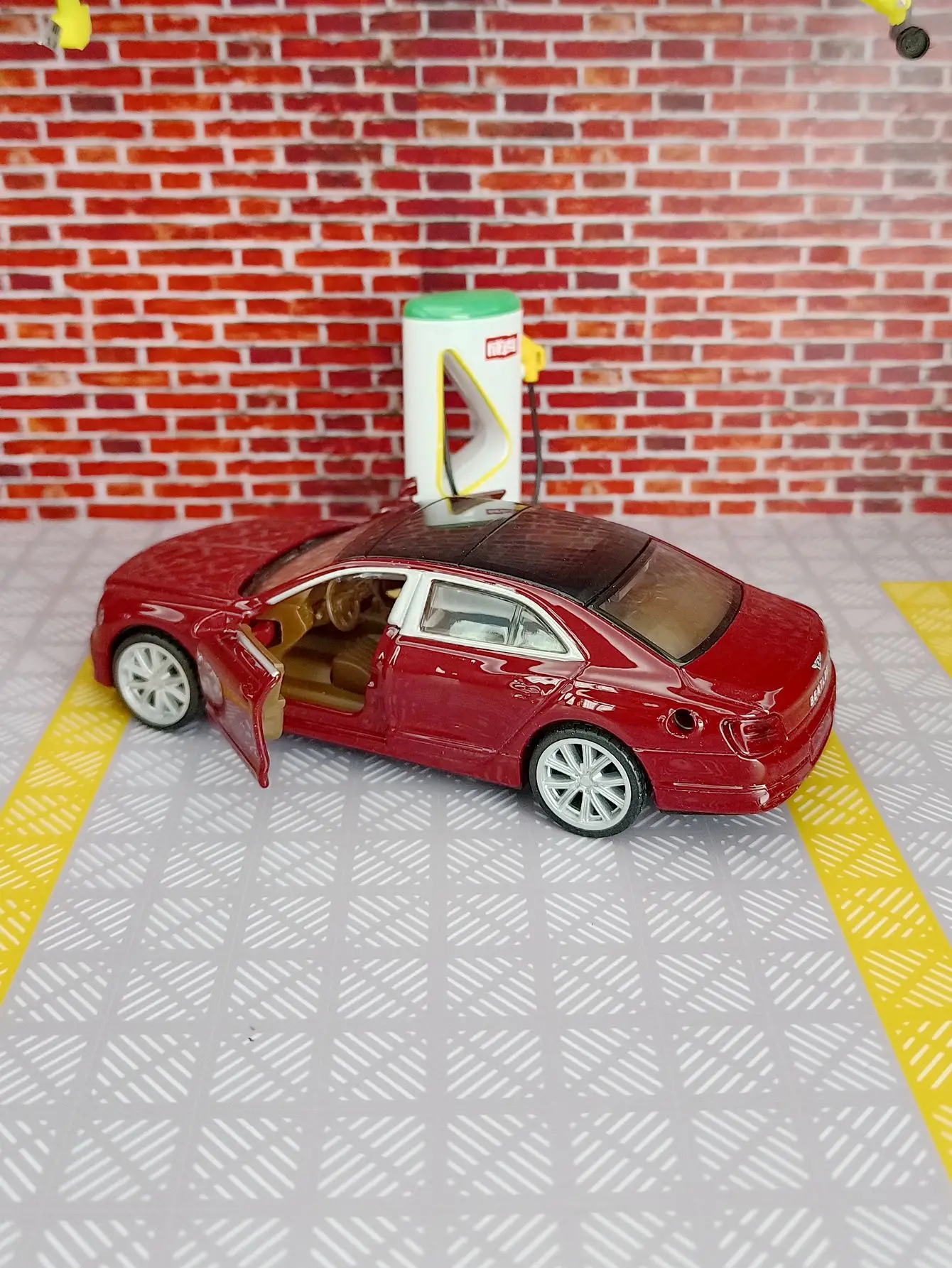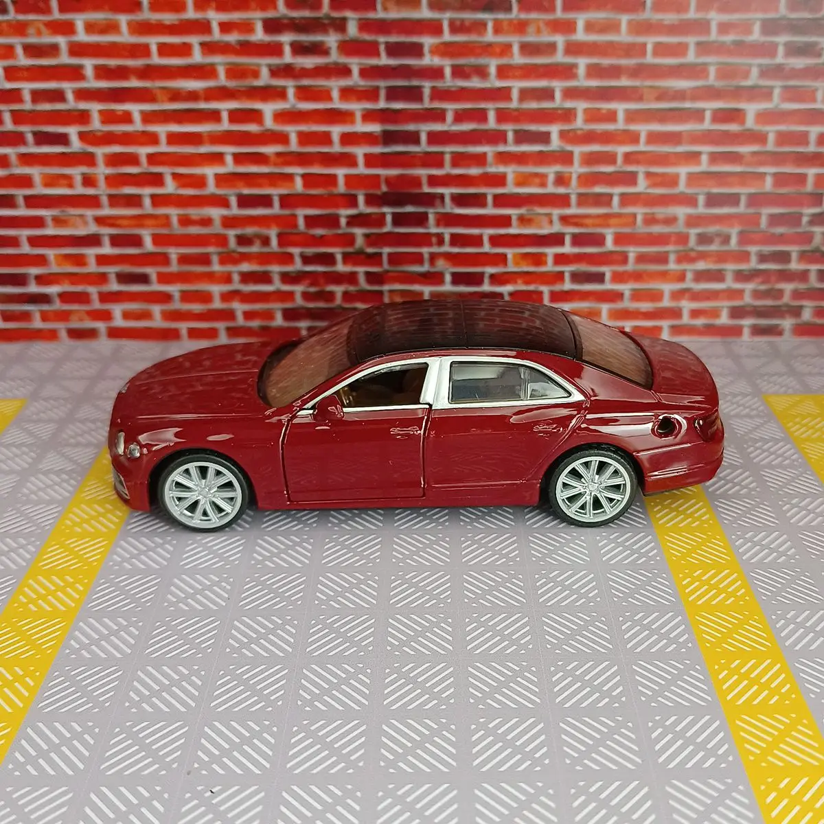 Experience the elegance of the Bentley Flying Spur in scale with this meticulously crafted 1:38 diecast model. Finished in a rich red with a glossy metallic sheen, it captures the car's iconic design with stunning accuracy. The smooth aerodynamic lines, detailed molded headlights, and taillights bring this collectible to life. It features a pull-back mechanism that propels the model forward when pulled, while the light and sound functions add an interactive element, making it a charming addition to your collection or playtime scenarios. Whether you are a collector or looking for a gift, this exquisite model reflects high-quality craftsmanship and attention to detail.
