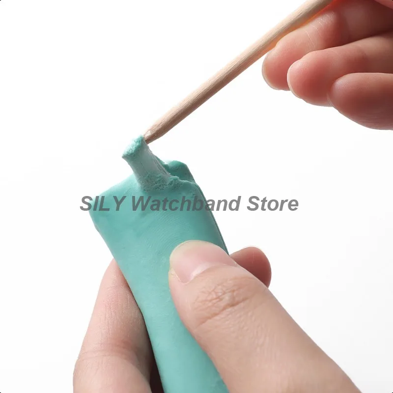 The Bergeon 6033 or 7033 Rodico Putty Watch Dial Cleaner is a professional-grade dust removal tool designed for watchmakers. Featuring a rectangular, light teal-colored putty with a smooth, slightly textured matte finish and rounded edges, it offers a minimalist and functional aesthetic. This single-piece tool is ideal for cleaning watch dials, removing dust, and assisting in repairs without chemicals, ensuring a gentle yet effective cleaning process. Perfect for precision watch maintenance, this versatile tool provides a reliable solution for maintaining the clean, pristine appearance of watch components, helping you achieve perfect results in every repair.