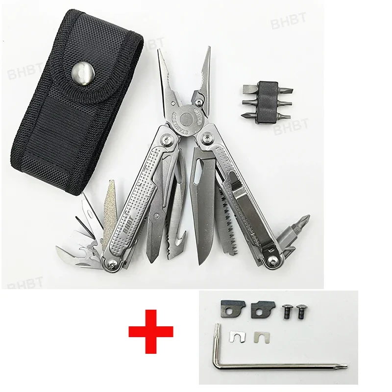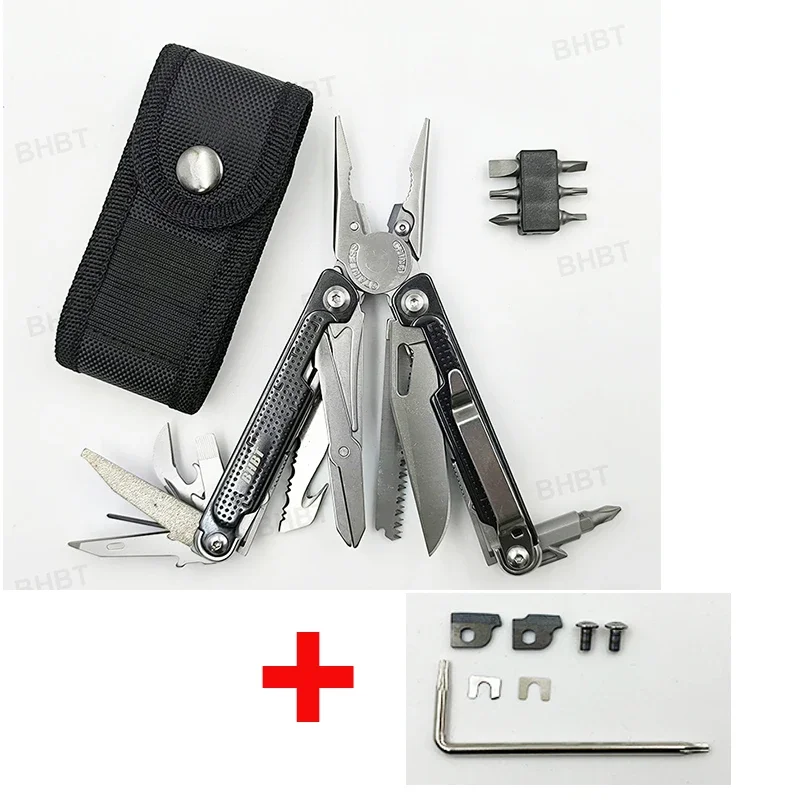 Experience the ultimate in multifunctional convenience with the this BHBT 20-in-1 Folding Multitool Pliers. Perfect for outdoor adventures, DIY projects, or everyday tasks, this tool combines 20 essential functions into a compact, foldable design. Crafted from durable materials, it features sleek handles with a matte or satin finish, exuding robustness and elegance. The textured dotted grip ensures secure handling, while the nested tool arrangement offers a tidy, efficient setup. The pointed serrated plier jaws are ideal for gripping and cutting, making it a dependable utility for any situation. Lightweight and portable, it includes a case for easy transport. Elevate your toolkit and be ready for any challenge with this stylish, highly functional multitool.