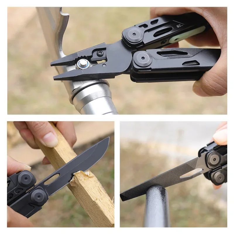 - Includes multi-function pliers with serrated jaws, a sharp foldable knife, a fine-toothed saw, and both Phillips and flat-head screwdrivers that fold neatly into the handle.