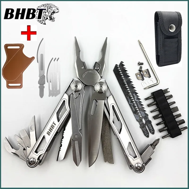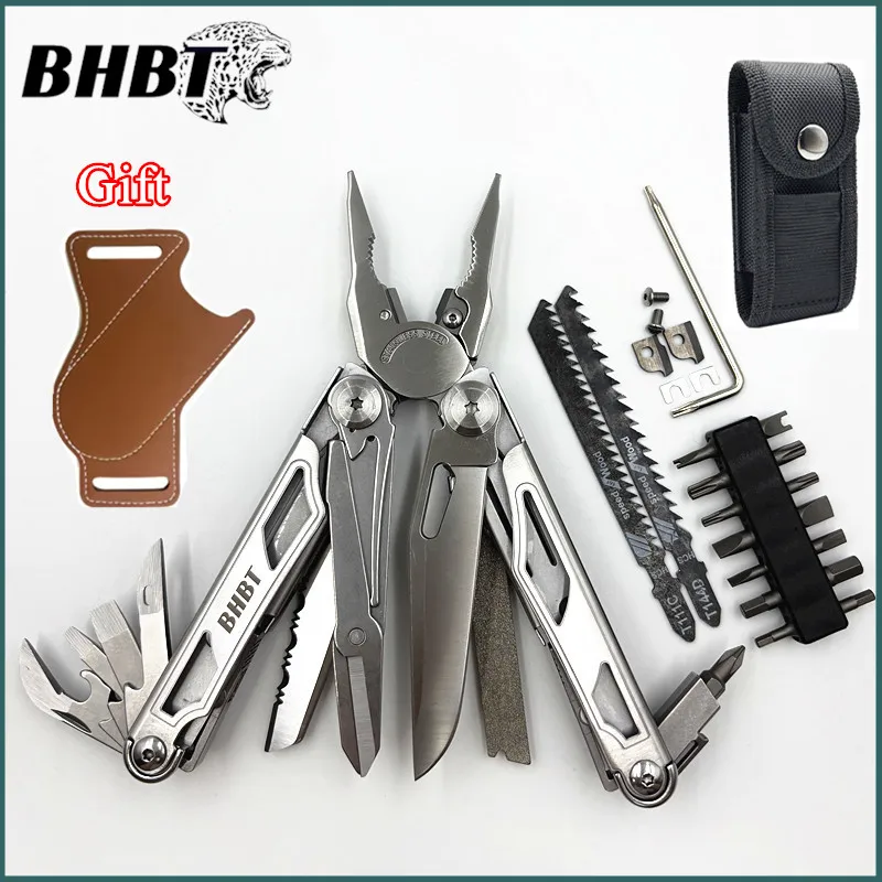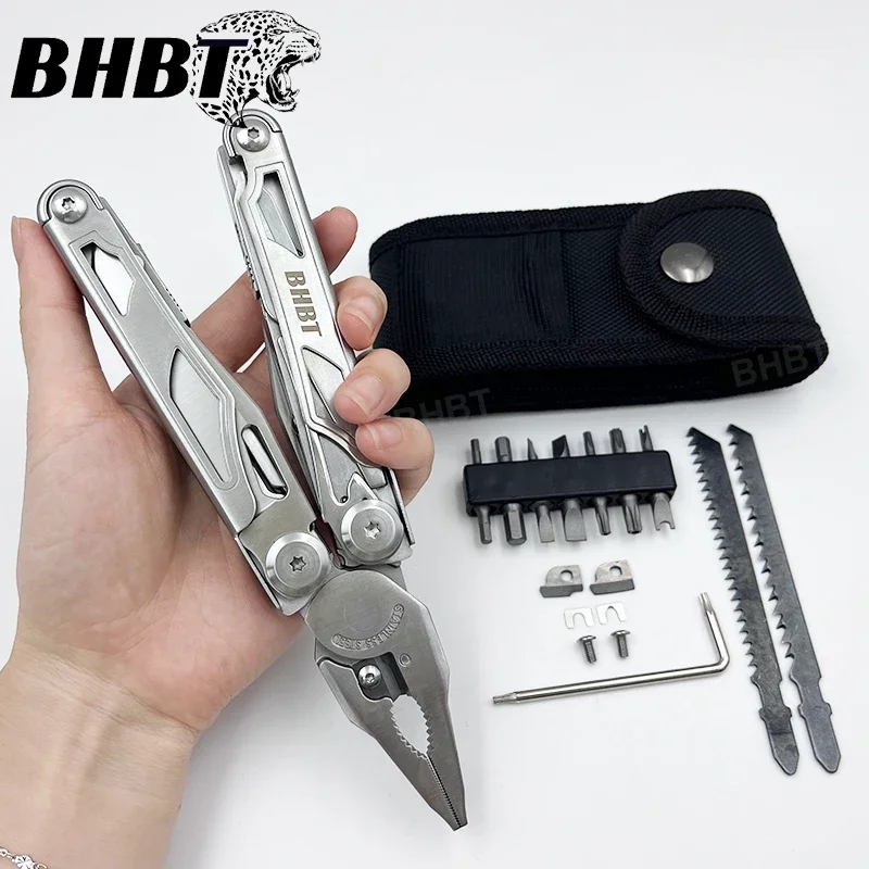 Imagine having a compact yet powerful tool that covers all your outdoor and DIY needs, right in the palm of your hand. The this BHBT 37-in-1 multitool features a sleek, polished stainless steel body with a modern industrial aesthetic, combining robustness with precision craftsmanship. Its foldable design ensures easy storage and portability, making it the perfect companion for outdoor adventures, woodworking projects, or everyday carry. Multiple tools are seamlessly integrated, including pliers, saw blades, screwdrivers, knives, and scissors—all easily accessible and designed for durability. The replaceable saw blade adds convenience to ongoing tasks, and the overall construction fosters a sense of reliability and efficiency, ready to support you in any situation.
