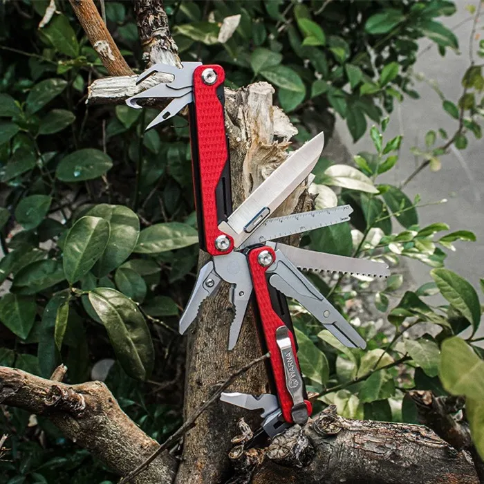 - Multi-functional capabilities including pliers, scissors, screwdrivers, knives, and saws, all foldable and securely stored.