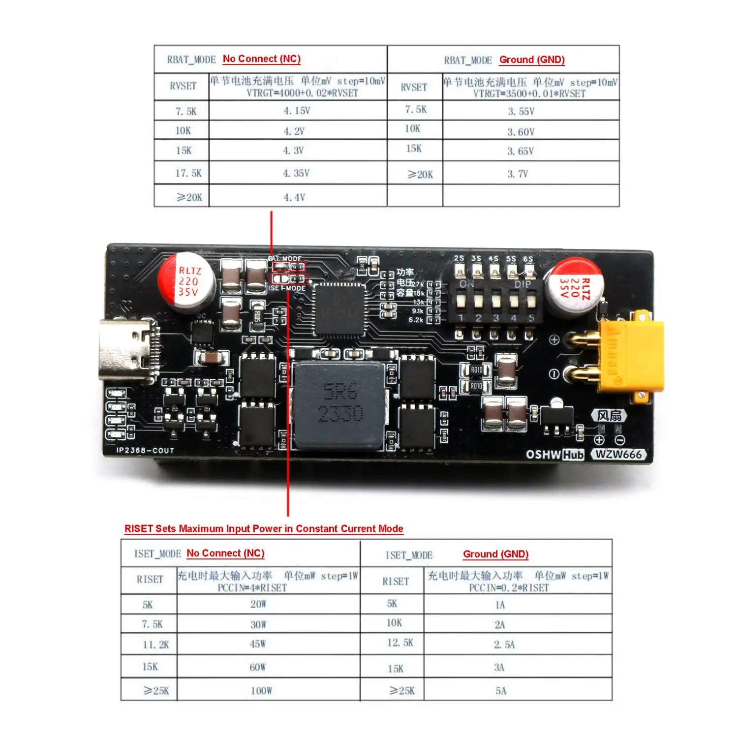 - Adjustable voltage settings for Li-ion (4.15V to 4.4V) and LiFePO4 (3.5V to 3.7V) batteries via external resistors, providing tailored configuration for safety and efficiency.