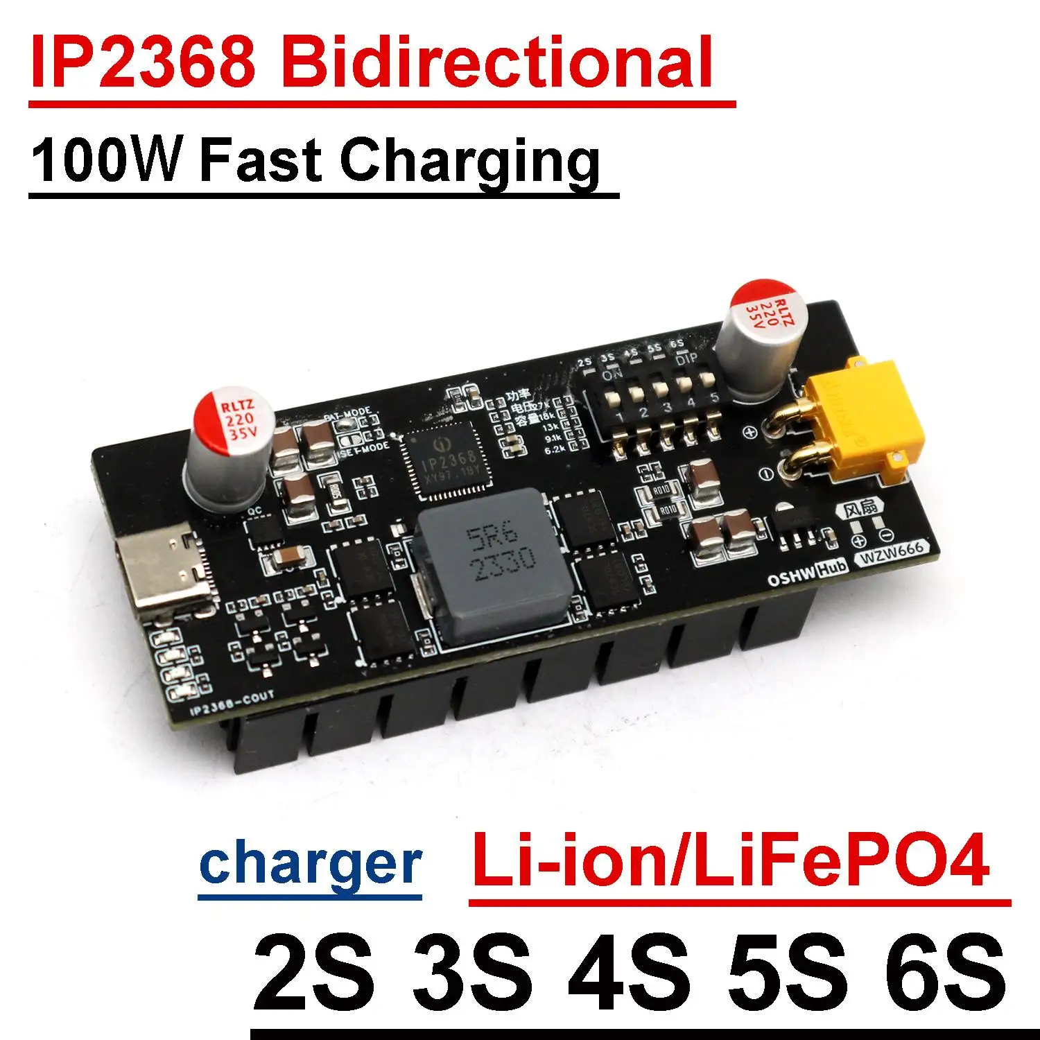 - Supports 2S to 6S configurations of Li-ion or LiFePO4 batteries, accommodating a range of voltage and capacity needs for various applications.