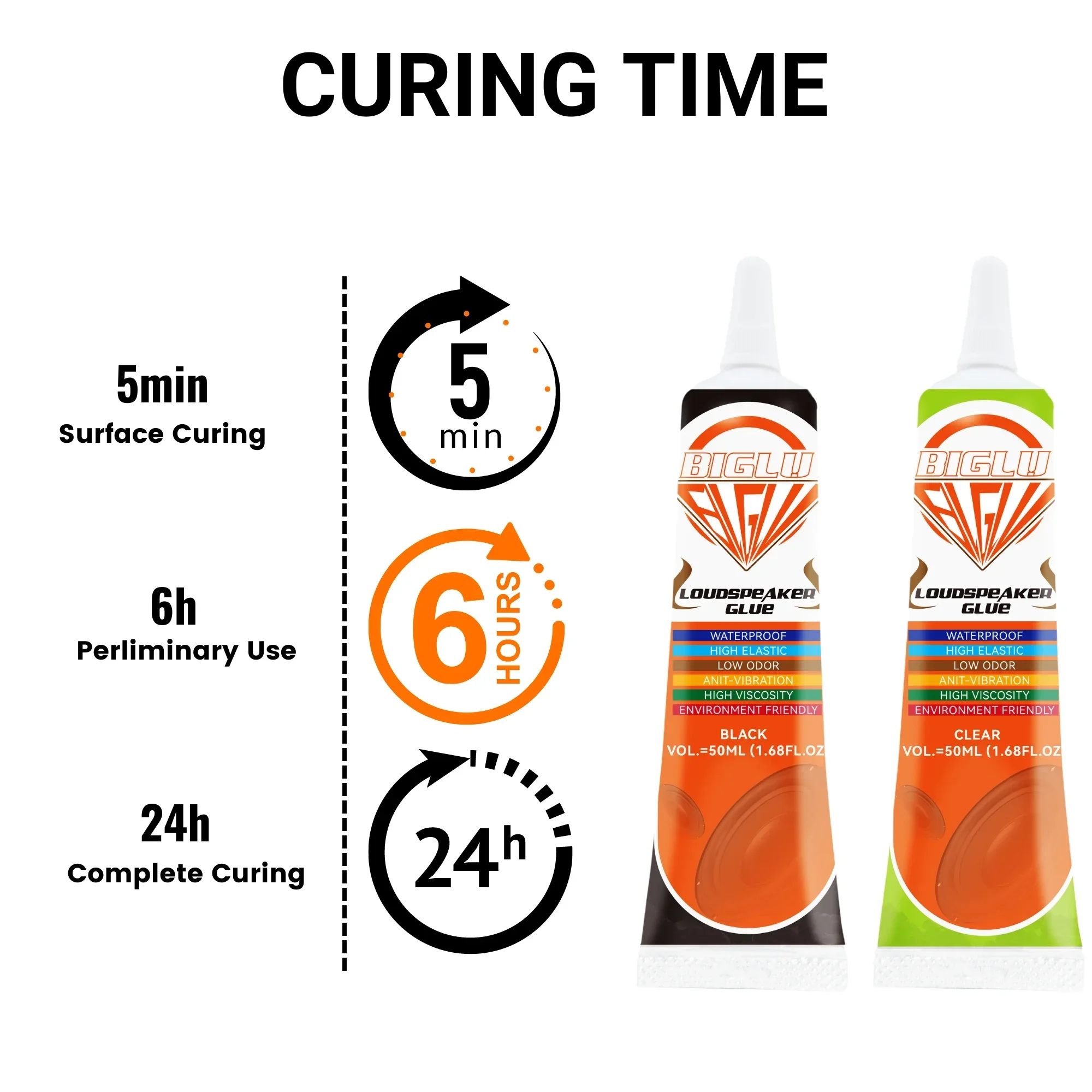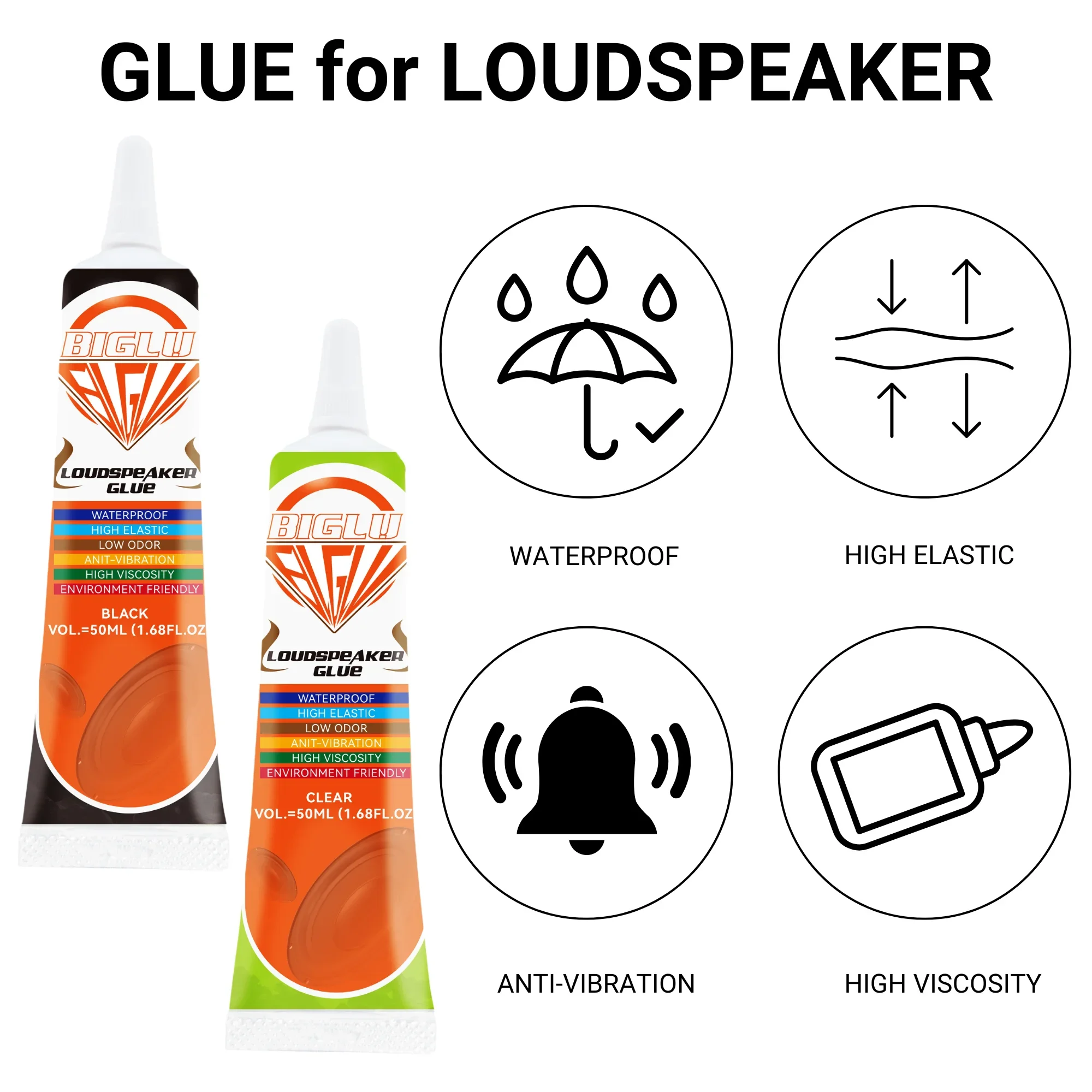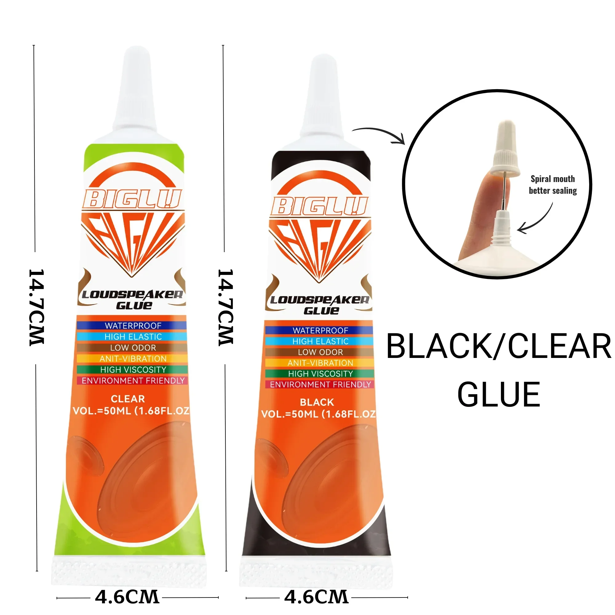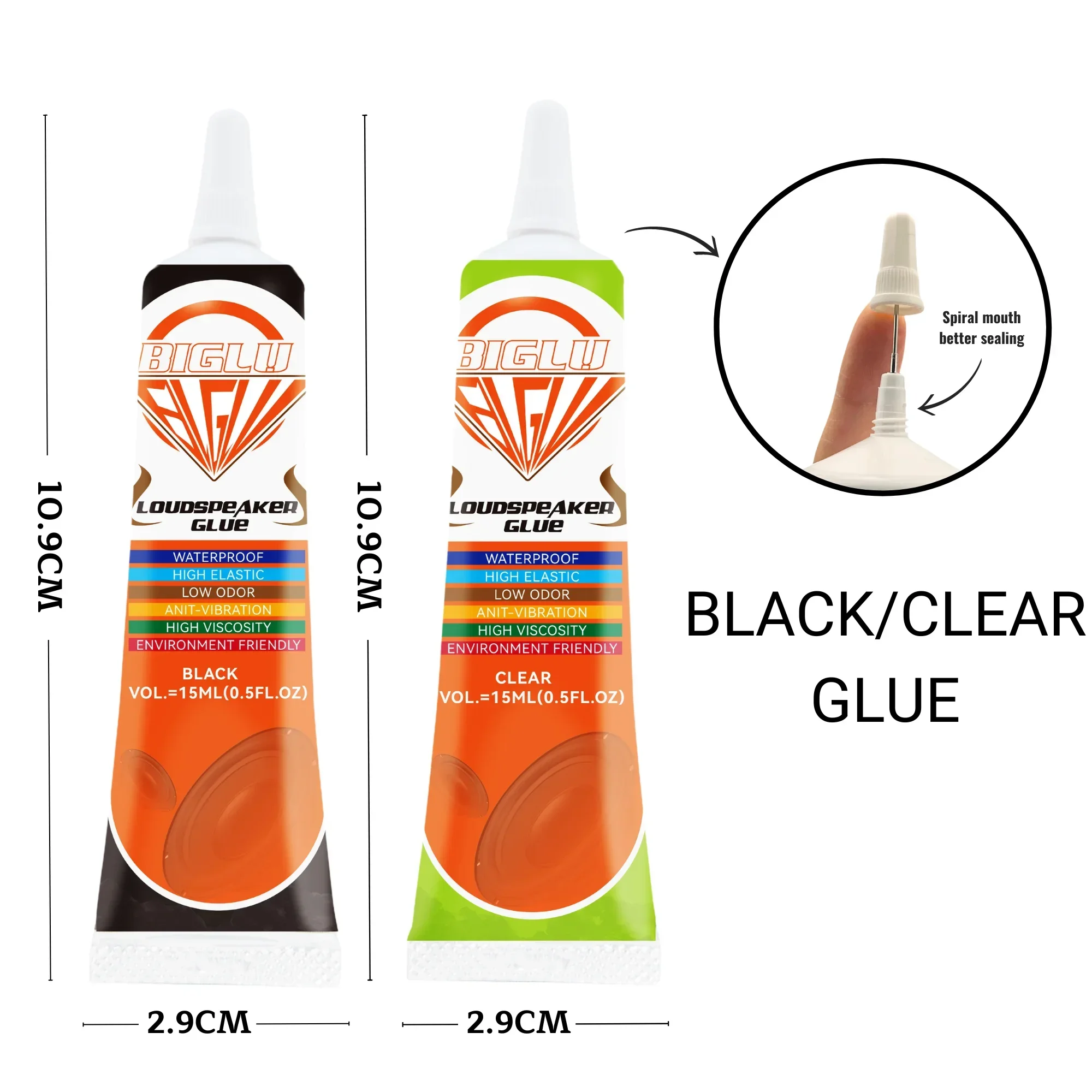 - This versatile glue comes in black and clear colors with capacity options of 15ml and 50ml, ideal for a wide range of speaker repair applications—bonding foam, paper, rubber, and more with ease.