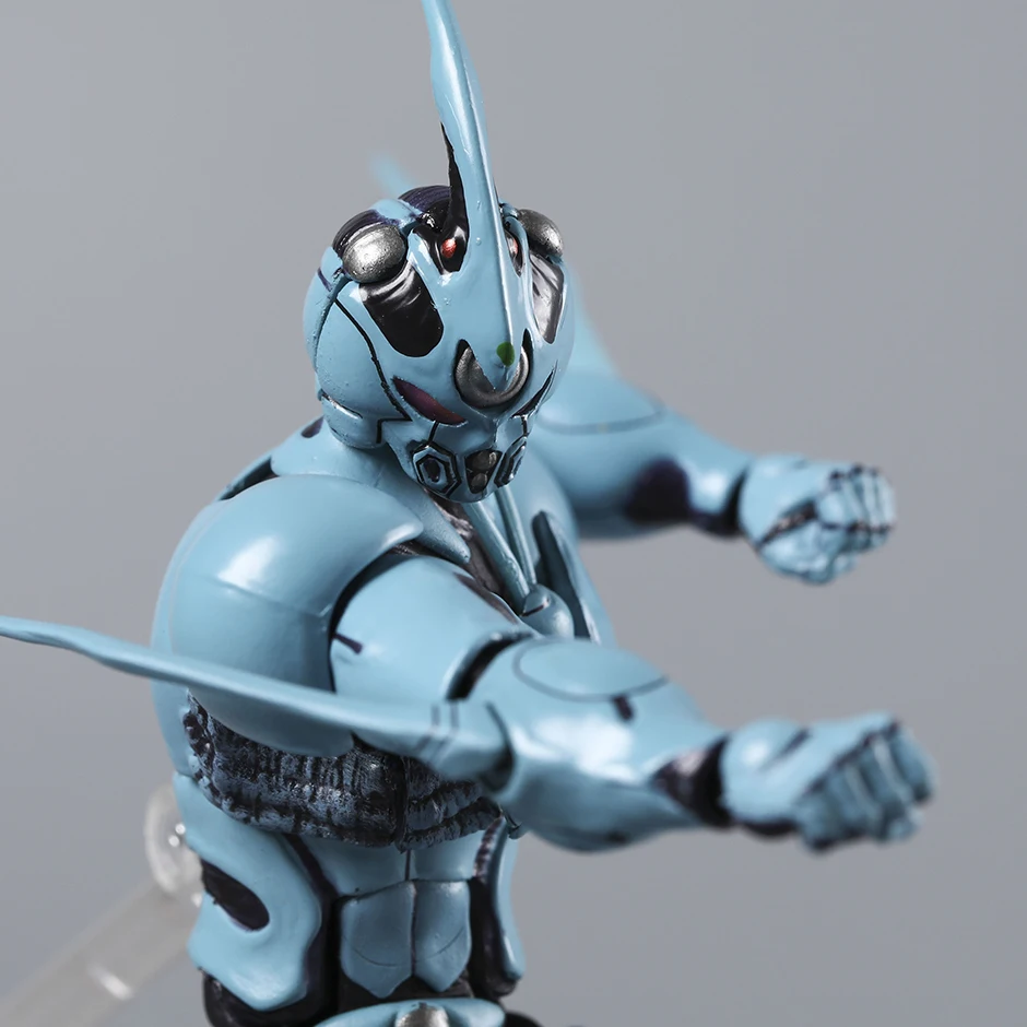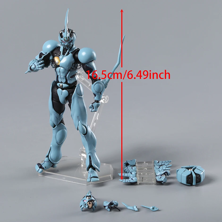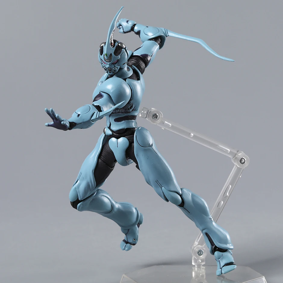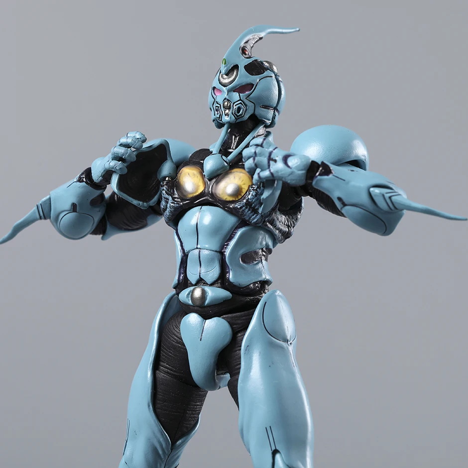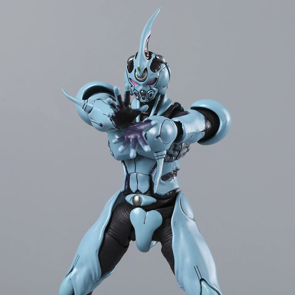 Bring your collection to life with the 600 Bioboosted Armor Guyver 1 Ultimate Edition action figure, standing approximately 16.5 cm (6.49″) tall and crafted from high-quality PVC. This detailed, fully finished model from the remastered series features a sleek, muscular design in a striking light blue color accented with black and metallic highlights. Its smooth, segmented armor and dynamic pose capture the character’s futuristic, high-tech aesthetic. The figure boasts an elongated, pointed helmet crest, rounded faceplate with recessed eyes, and a prominent metallic sphere at the chest, making it a perfect showcase piece for enthusiasts aged 14 and up, complete with original packaging in two variants—’600 no box’ and ‘600 box.’