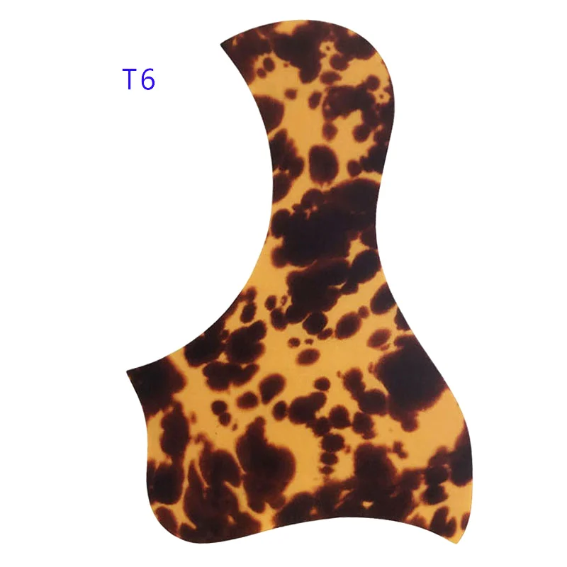 Transform your acoustic guitar with this striking bird-style custom pickguard, measuring 109.1mm by 161.5mm and 0.6mm thick, crafted from high-quality PVC and composite materials. Featuring a glossy, animal-inspired tortoiseshell or animal print pattern in vibrant fiery hues of amber, brown, and black, it’s both a protective anti-scratch accessory and a striking decorative element. The pickguard’s white outline enhances its bold silhouette, while the self-adhesive backing with premium 3M 467MP adhesive ensures easy, secure installation on 40″ and 41″ acoustic guitars. Available in multiple colors (T1, T2, T3, T4, T5, T6, T7), it complements and elevates your instrument’s aesthetic.