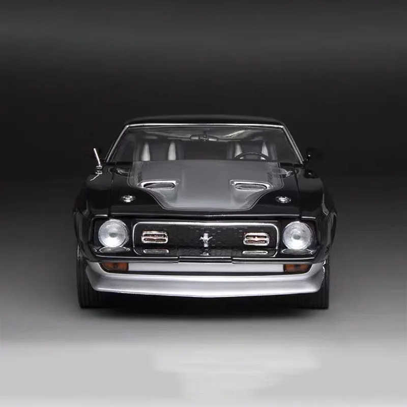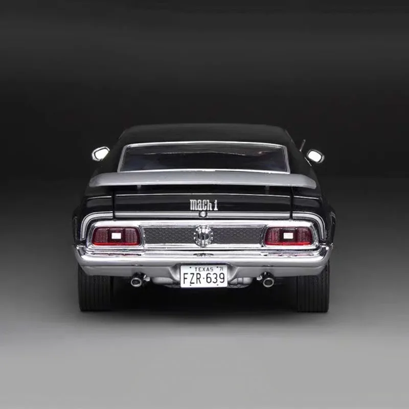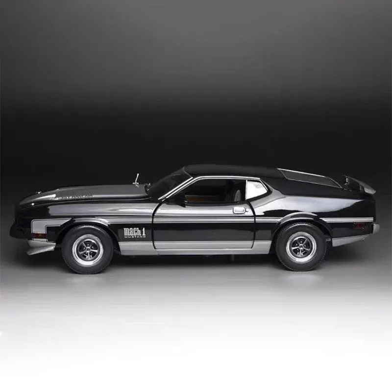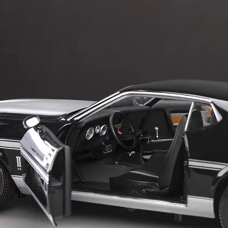 - The black color with silver accents highlights the aggressive, sporty aesthetic of this classic Mustang Mach 1 with precise paintwork.