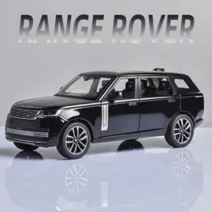 Experience the sophisticated realism of this high-gloss black Land Rover Range Rover diecast model, meticulously crafted with a polished metal body, plastic chassis, and durable rubber tires. Measuring approximately 21.7 centimeters in length, it features an intricate front grille with horizontal slats, well-defined headlights, and subtle silver trim along its sleek side profile. The clear windows reveal textured interior seats, while the black and silver alloy rims add a touch of luxury. Its smooth, reflective surface emphasizes a modern, high-end aesthetic, perfect for collectors. Equipped with functional sound and light features, a pull-back mechanism, and doors that open to showcase detailed craftsmanship, this model offers both visual appeal and interactive play. It’s a true reflection of quality and precision, promising to elevate any collection with its realism and style.