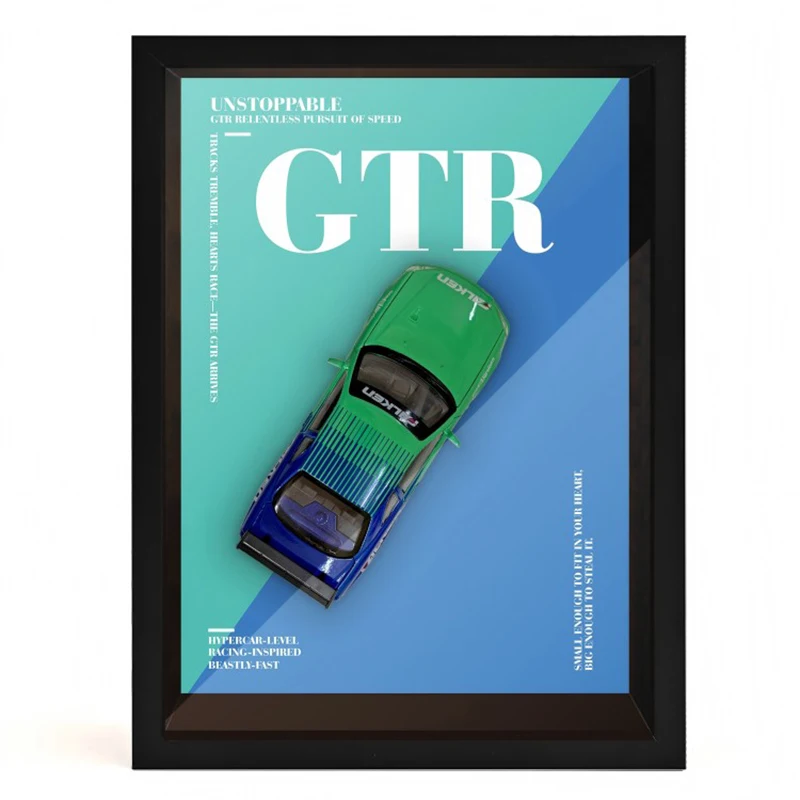 Experience the thrill of owning a highly detailed, realistic diecast metal model crafted with precision. This sleek black sports car, with its smooth aerodynamic contours and polished finish, captures the essence of high-performance design. Tinted windows add a touch of sophistication, making it a perfect decorative piece or collector’s item. Mounted within a striking frame with a fiery red and orange molten lava background, it creates an energetic and dynamic aesthetic that stands out on any display shelf. Whether you’re a passionate collector or looking for an impressive gift for a car enthusiast, this model brings a sense of speed, power, and elegance into your space. Its versatility makes it a must-have for fans of racing and sporty vehicles alike.