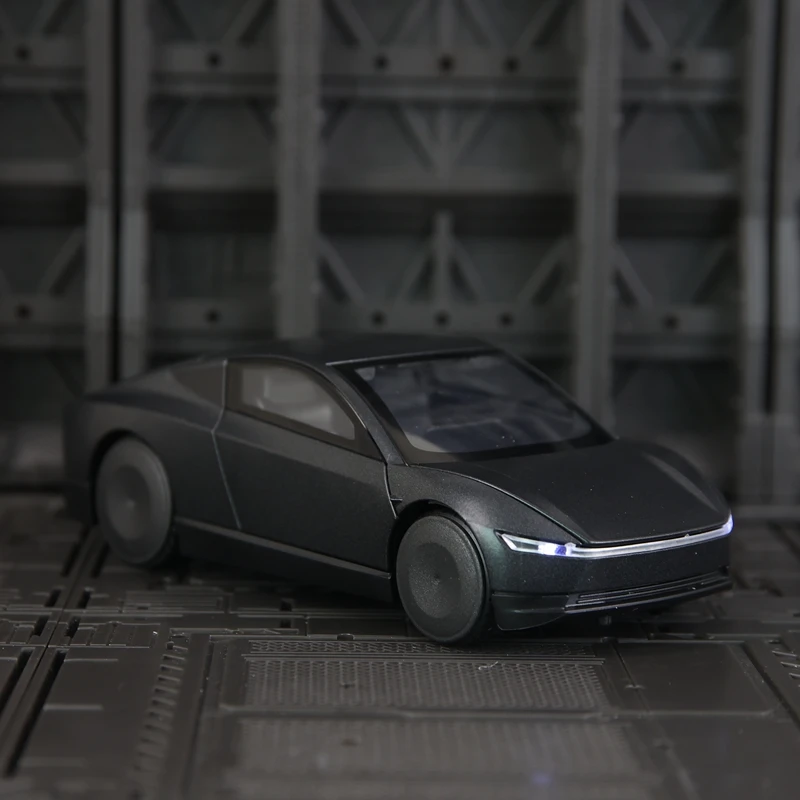 This 1:32 scale diecast alloy model car features a sleek, modern design with a glossy black exterior, complemented by options in gold and silver. Crafted from durable metal, it boasts functional, freely opening doors, engine hood, and trunk, showcasing intricate craftsmanship and realistic detailing. The illuminated slim LED headlights add a high-tech touch, highlighting its sophisticated aesthetic. Suitable for collectors and enthusiasts, this high-quality model is powered by a button battery, designed for ages 14 and up, and is certified with CE, making it an impressive display piece for any luxury or supercar collection.
