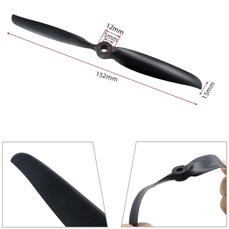 Elevate your RC airplane performance with this set of 10 high-quality 6040E propellers, each measuring approximately 15.2 cm in length and featuring a 5mm aperture. Crafted from durable composite fiber and nylon, these lightweight propellers weigh only 3 grams each and are designed for high-speed brushless motors at 2200KV, 2400KV, or 2450KV. Their sleek, matte black finish and aerodynamic, tapered blades ensure maximum efficiency, strength, and reliability during high-speed flights. Perfect for RC enthusiasts seeking powerful, lightweight, and resilient propellers that enhance the performance and durability of remote-controlled aircraft.