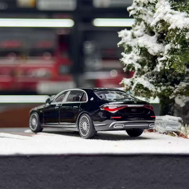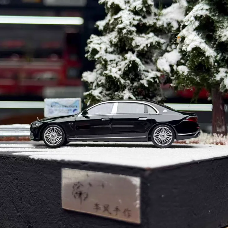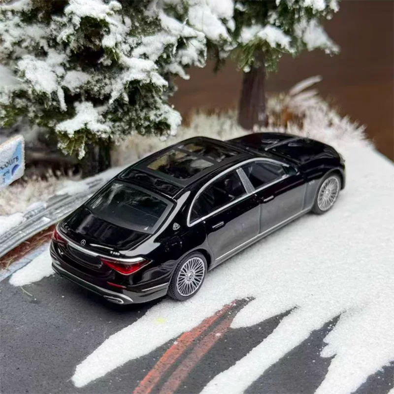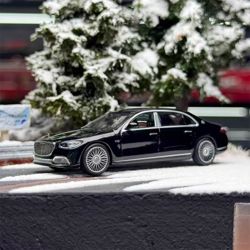 This meticulously crafted 1:64 scale diecast alloy model car features a sleek black finish with silver accents on the side windows and door handles, detailed grille and headlights, and multi-spoked metallic wheels, all designed for display and collection. With an elongated, modern silhouette and a slightly transparent panoramic sunroof, this model exudes luxury and sophistication. Crafted to a high standard of realism, it measures approximately 1:64 and includes joints with adjustable elasticity that may detach during transportation but are easily reassembled. Suitable for ages 14+, this static collectible showcases fine craftsmanship, making it an ideal gift or decorative piece for adult enthusiasts.