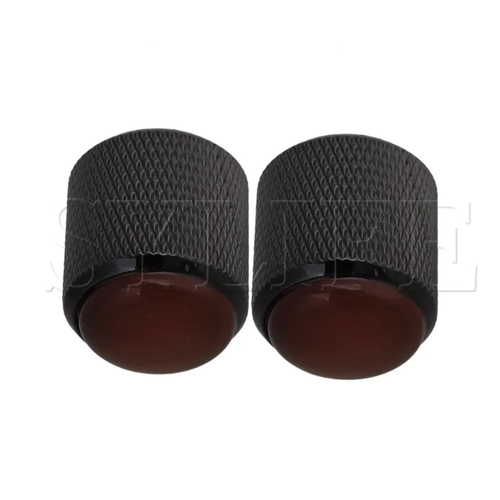 Enhance your guitar’s functionality with this set of three black alloy knobs featuring vibrant red glass tops, measuring approximately 2 cm in diameter and 2.3 cm in height, with a 6 mm hollow shaft for easy installation. Designed for volume or tone control on electric guitars and basses, these sleek, modern knobs offer a textured, knurled surface for a secure grip and a glossy red finish for a striking visual accent. Weighing 87 grams in total, they provide durable, stylish upgrades ideal for replacing worn or damaged controls, enriching both the look and feel of your instrument’s control interface.