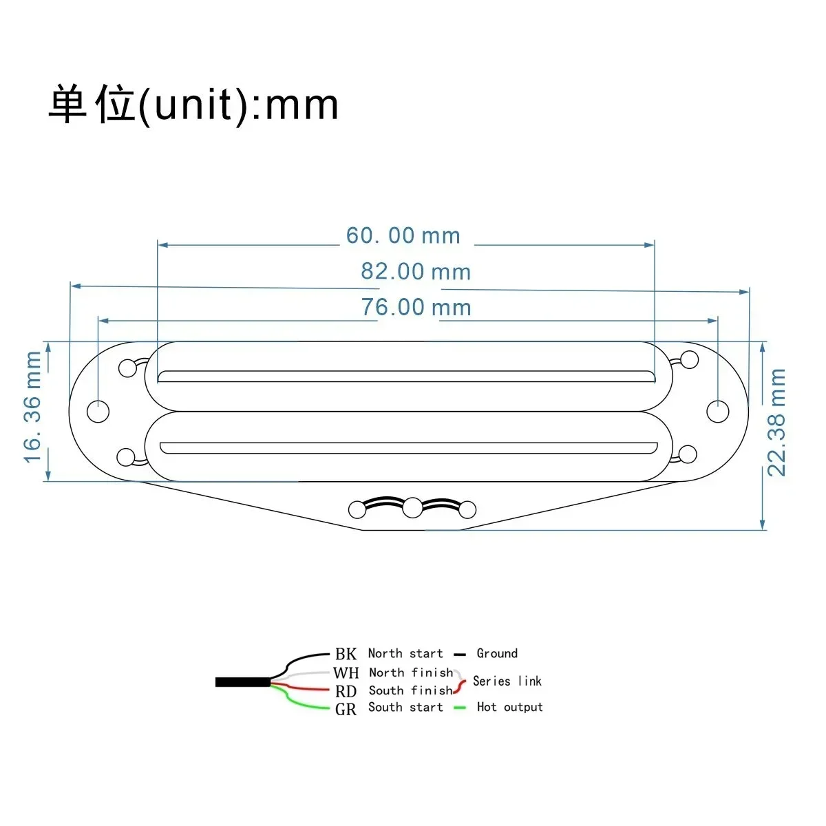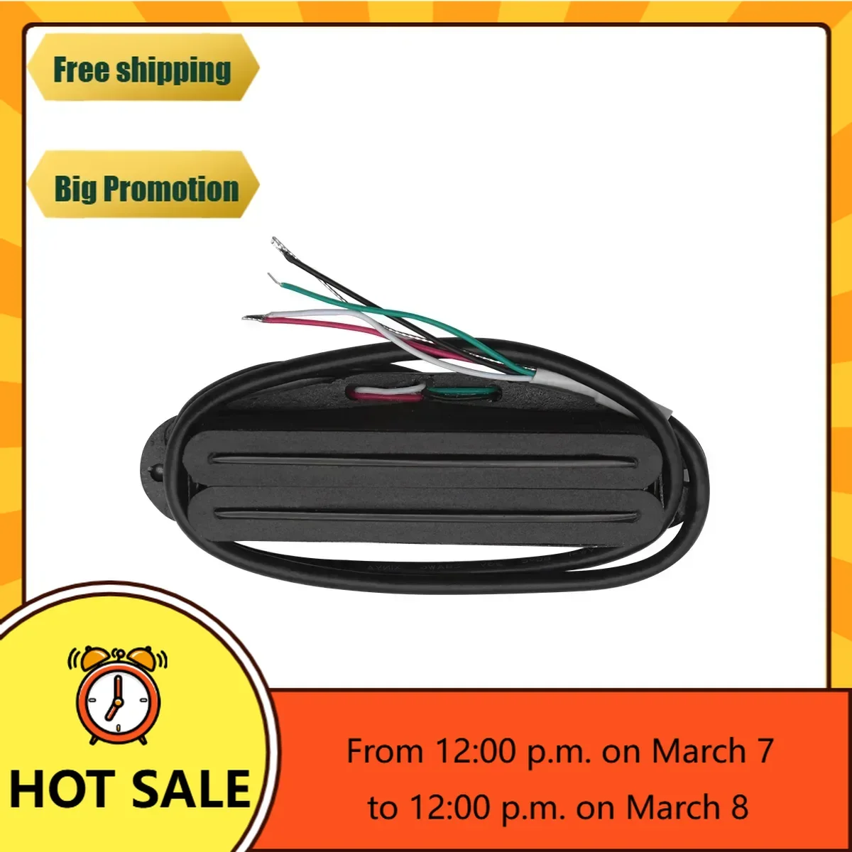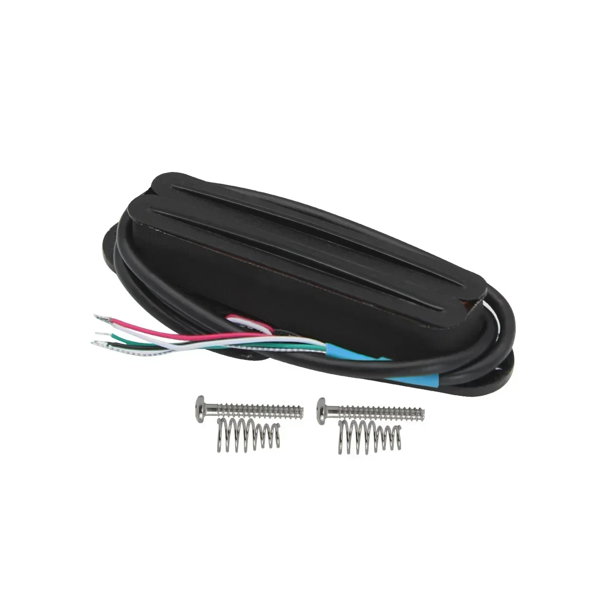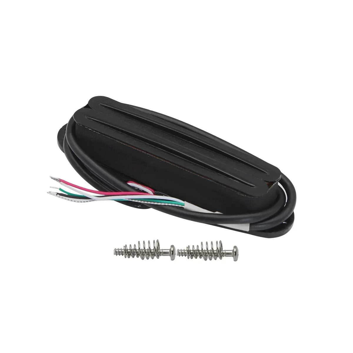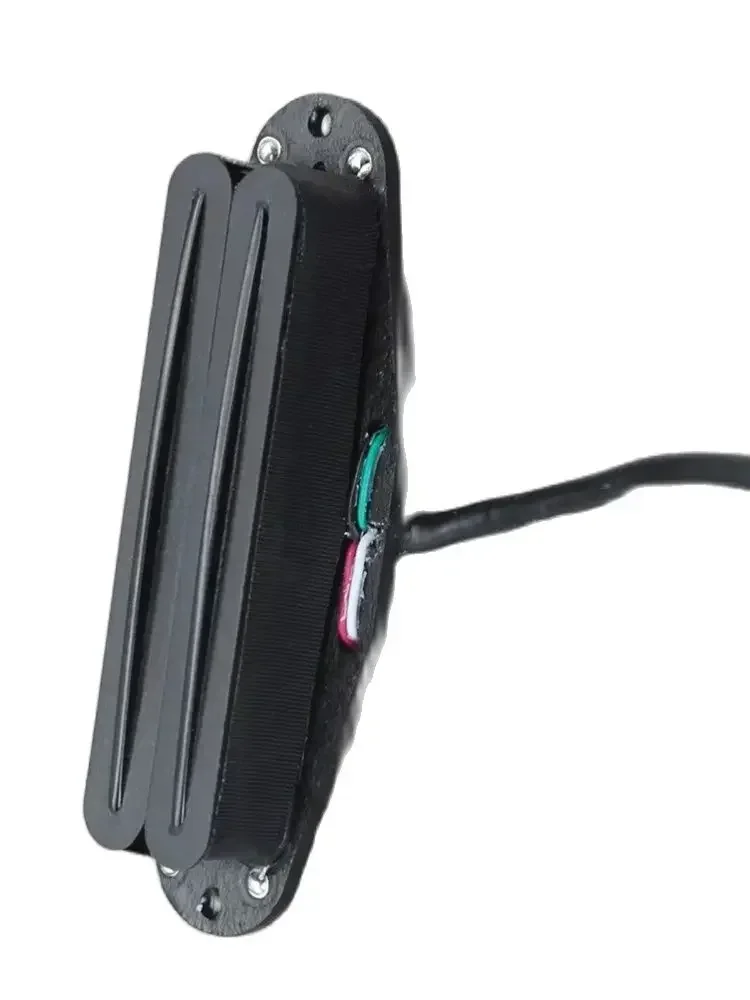 Experience the sleek design and powerful sound of this full black Alnico 5 mini dual-track humbucker pickup. With its minimalist rectangular shape, matte black finish, and dual rows of magnetic pole pieces, this pickup offers a modern aesthetic that complements any guitar. Designed for versatility, it fits into standard single-coil slots and is suitable for neck, mid, and bridge positions, enhancing your playing with exceptional clarity and output. The four-conductor wiring allows coil splitting and customization, while the wax-potted construction ensures quiet operation by eliminating feedback and unwanted noise. Whether upgrading your guitar or building a custom instrument, this pickup delivers reliable performance, excellent resistance options, and a stylish, professional appearance that blends seamlessly with your setup. Its lightweight design and easy installation hardware make it a perfect choice for electric guitar enthusiasts seeking quality and style.