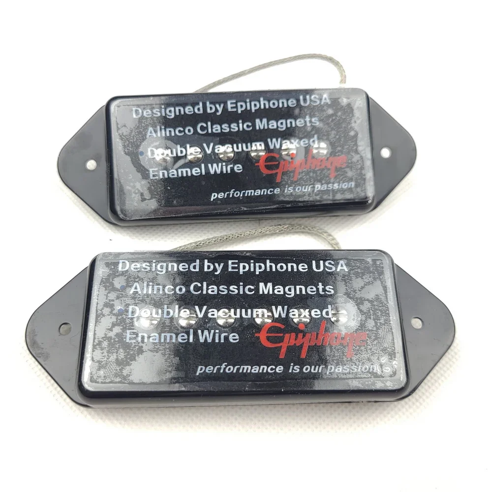 Experience the classic, soulful tone of this black Alnico P90 dogear-style pickup. Crafted with durable metal construction, it offers a sleek, sophisticated appearance that complements any electric guitar. Its glossy black finish on the top pickup reflects light for a modern aesthetic, while the distressed bottom pickup adds vintage charm with visible scratches and scuffs. Designed for players who seek both style and substance, this pickup provides a balanced, warm, and powerful sound. Its precise construction, with mounting flanges and screw holes, ensures easy installation. Perfect for guitarists looking to upgrade or replace pickups, it guarantees rich tonal qualities and exceptional craftsmanship for studio or stage performances.