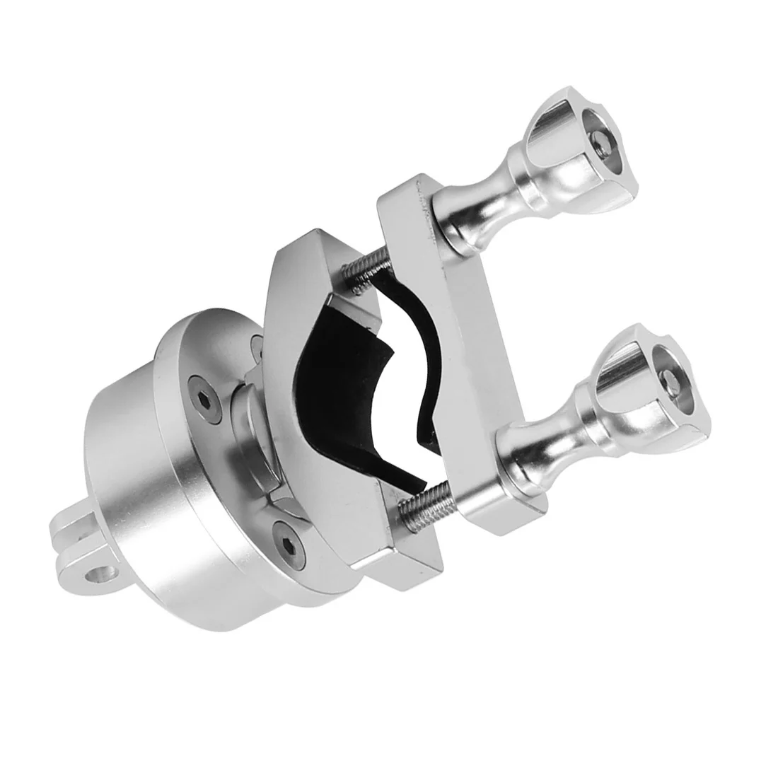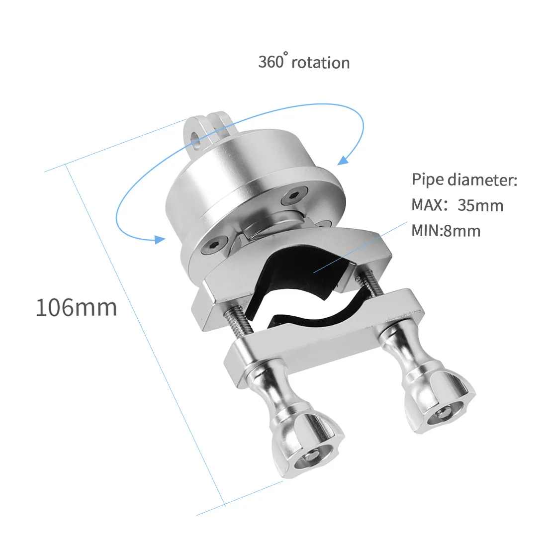 Experience ultimate camera versatility with this sleek black aluminum alloy 360-degree swivel mount. Designed for 22-32mm selfshot arms and bars, it offers smooth, panoramic rotation thanks to a precision ball bearing system. Its compact and sturdy design ensures stability during high-intensity activities like skydiving, skiing, or cycling, while its lightweight construction minimizes extra bulk. Compatible with a wide range of action cameras, including GoPro Hero 9/8/MAX, Insta360 ONE R, Osmo Action, Yi, EKEN, and AKASO EK7000 4K, it seamlessly adapts to various mounting scenarios. Whether attached to helmets, motorcycles, or bicycles, this mount enhances your ability to capture immersive footage effortlessly, combining modern style with advanced functionality.