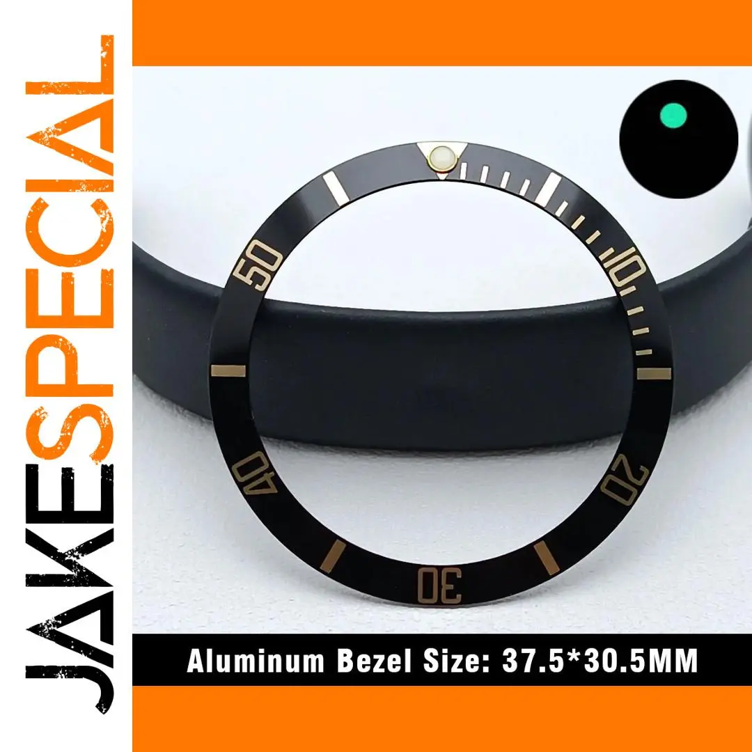 Elevate your watch's style with this Dwayne Campbell sloping aluminum bezel insert. Crafted from high-quality aluminum, this piece features a glossy black finish that adds modern elegance to any watch. Measuring 37.5 mm in external diameter, it fits securely within your watch case, while the stunning gold markings and triangular marker provide exceptional visibility and a striking color contrast. Imagine wearing your watch adorned with this exquisite bezel, catching the light and drawing compliments wherever you go. Embrace the confident style and functionality this bezel offers, transforming your timepiece into a personalized accessory that truly reflects your taste and sophistication.
