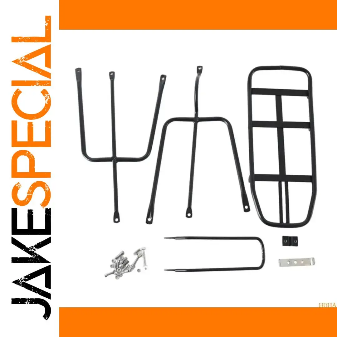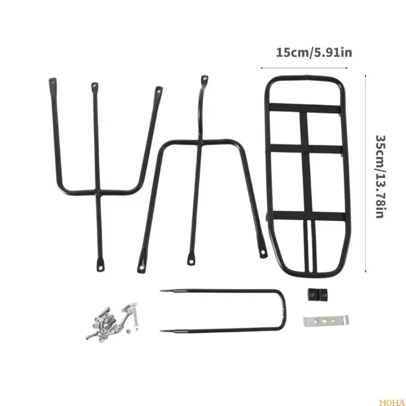 Enhance your mountain biking experience with this durable rear cargo rack, measuring approximately 35x15cm (13.78×5.91″) and supporting up to 60kg (132 lbs). Constructed from lightweight aluminum and iron, it offers superior impact resistance and robust stability for securely carrying backpacks, baskets, or gear. Its sleek, minimalist design features a grid-like platform with a matte black finish, complemented by elongated, curved support brackets for a streamlined look. Easy to mount and built for rugged outdoor use, this cargo rack combines practicality with a modern, utilitarian aesthetic—perfect for those who demand reliable, heavy-duty gear transport on challenging trails.