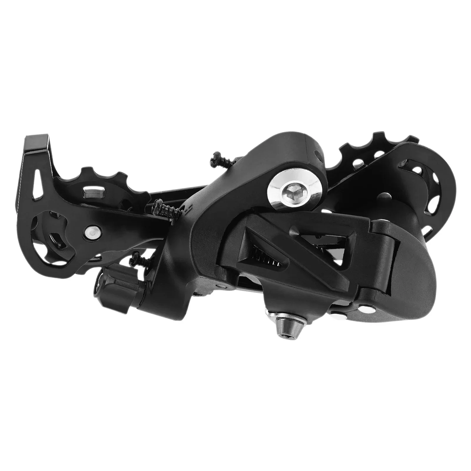 Experience smooth, reliable gear shifting with this high-quality aluminum alloy bicycle rear derailleur, compatible with 7- and 8-speed SIS index systems. Its wide link design ensures durability and precise performance, while the large guide wheel minimizes noise and wear for a quieter ride. Suitable for mountain bikes, road bikes, racing bikes, city bikes, and folding bikes, it offers versatile installation options for direct or hook mounting. Designed to support up to 8 gears, this sleek, black component combines robust metal construction with a modern aesthetic, providing an efficient, lightweight solution for your bike’s drivetrain.