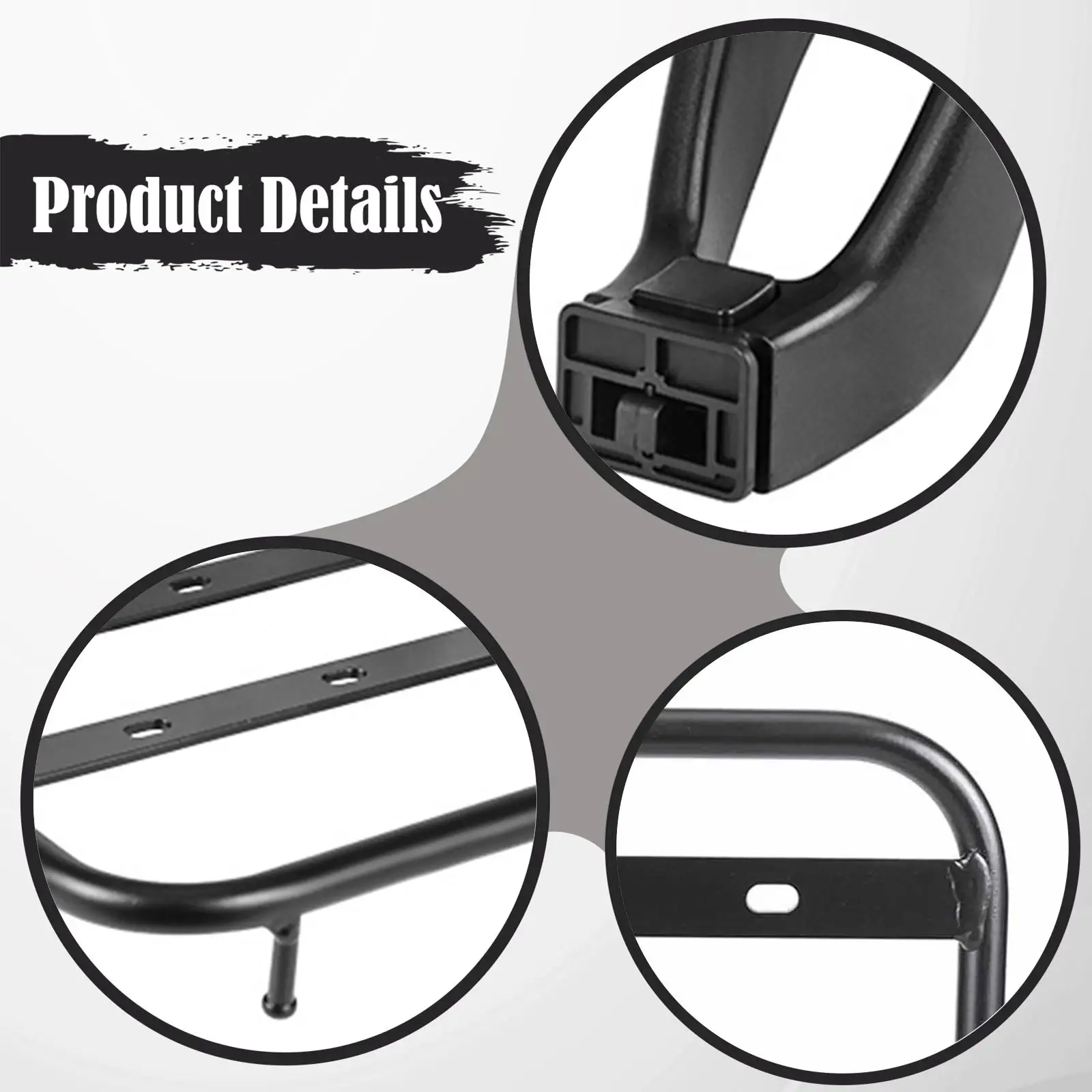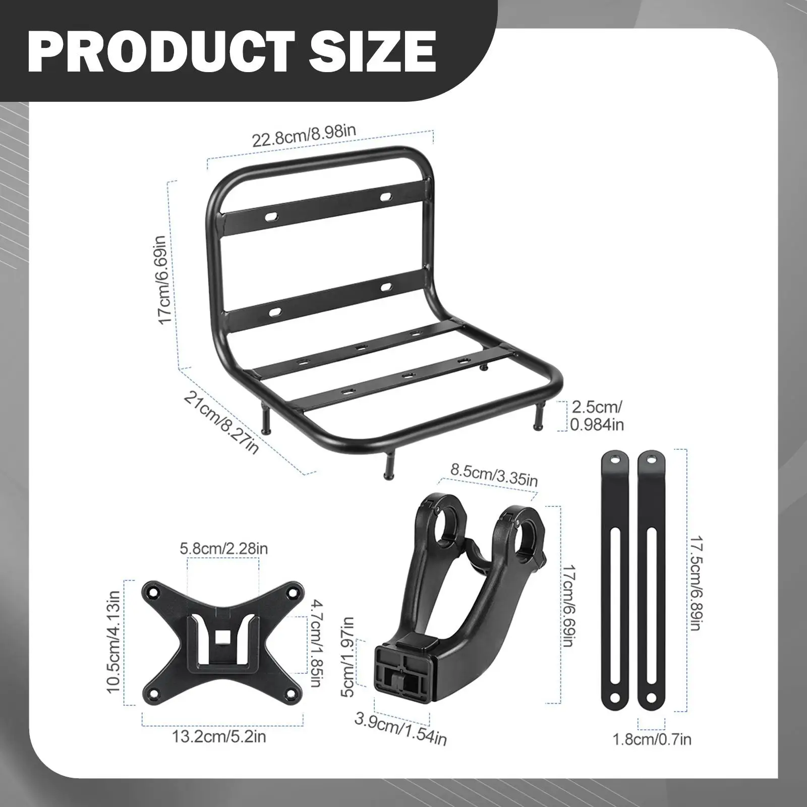 Enhance your cycling experience with this high-strength aluminum alloy front rack, supporting up to 15kg (33 lbs). Measuring 22.8cm x 21cm x 17cm (8.98″ x 8.27″ x 6.69″), it provides spacious cargo capacity in a compact, lightweight design. Its sleek black finish and robust tubular frame, with rounded edges and reinforced joints secured by visible bolts, combine style and durability. Compatible with bicycles featuring front fork mounting holes and disc brake systems, it offers easy installation with minimal tools. Perfect for carrying backpacks, shopping bags, camping gear, and more, this bike front rack is ideal for outdoor adventures, touring, and daily commuting.