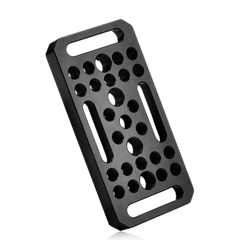 Imagine elevating your photography and videography setups with this sleek, black aluminum alloy plate. Crafted with precision CNC machining, it features a smooth surface, crisp edges, and a matte finish that exudes professional elegance. Its compact size of 10 x 5 x 1 centimeters makes it easy to handle and install, while multiple threaded holes—1/4-inch and 3/8-inch—offer seamless compatibility with various accessories like rail blocks, dovetails, or short rods. The central 1/4-inch screw enables secure attachment to your camera or cage. Designed for versatility, this mounting plate allows for multiple accessories to be connected simultaneously, significantly improving your workflow quality and efficiency. Its durable, corrosion-resistant build ensures reliable performance over time in demanding shooting scenarios.