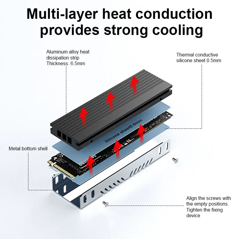 - Includes a thermal silica gel pad for optimal heat transfer, along with an air guide structure that promotes rapid passive cooling and heat dissipation during high-performance tasks.