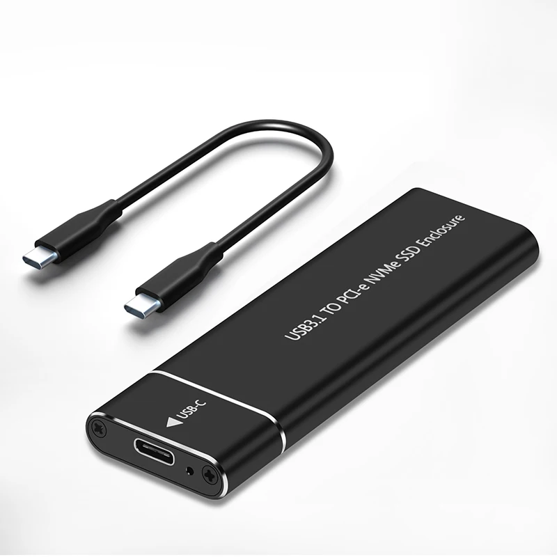 Experience the perfect blend of durability and modern design with this black aluminum NVMe SSD enclosure. Its smooth matte finish and subtly rounded edges give it an understated, elegant appearance that seamlessly complements any setup. Compact yet robust, measuring approximately 100 x 31 x 9 mm, it’s designed for portability and ease of use. Simply snap in your NVMe PCIe M.2 SSD—supporting sizes 2230, 2242, 2260, and 2280—and connect via the USB 3.1 Type-C interface. Its minimalist style is accentuated by a small LED indicator and a clean top surface with discreet white text. Whether at home or office, this enclosure offers a reliable, stylish way to expand your storage without sacrificing aesthetic appeal, making it perfect for professionals and tech enthusiasts alike.