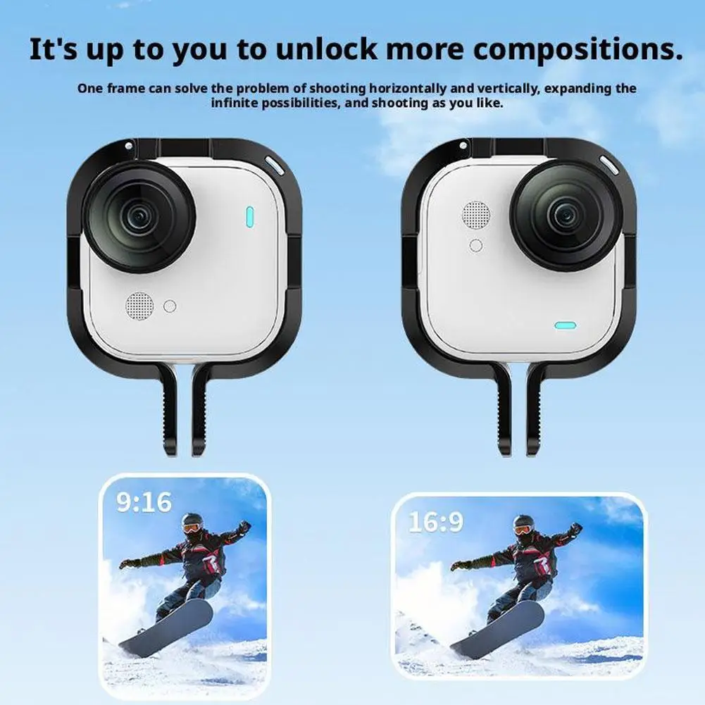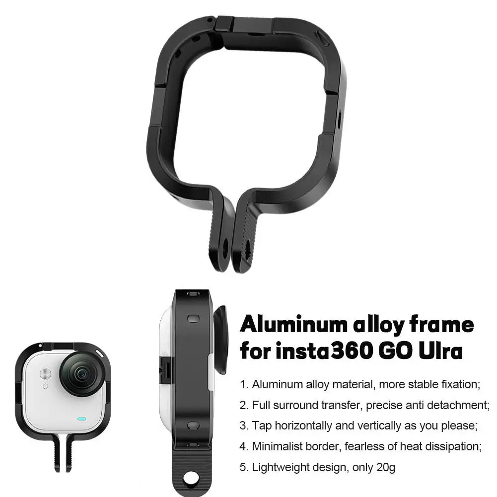 Enhance your Insta360 GO Ultra with this sleek, black aluminum alloy protective metal frame weighing only 20 grams. Designed with a minimalist open-square shape and reinforced corners, it offers precise, drop-proof protection while maintaining a lightweight profile. The fully enclosed construction allows flexible shooting in both horizontal and vertical orientations, ensuring durability and optimal heat dissipation during extended use. Its smooth, matte finish provides a modern aesthetic, seamlessly fitting your camera to elevate performance and style. This high-quality accessory is perfect for those seeking reliable protection combined with a contemporary look for their action camera.