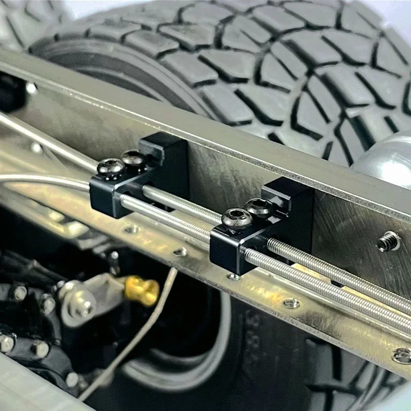 Enhance the realism of your 1/14 scale RC truck with this durable aluminum axle lock upgrade, available in black. Specifically designed for Tamiya models such as SCANIA 770S, FH16, MAN, and ACTROS, these rugged L-shaped components feature a sleek, minimalist aesthetic with rectangular bases and circular holes, combining sturdy metal construction with precise engineering. The set includes one or two pieces to improve performance and authenticity in your RC truck assembly. Non-electronic and battery-free, these high-quality accessories are perfect for enthusiasts aged 14 and above seeking to elevate their vehicle’s durability and appearance.