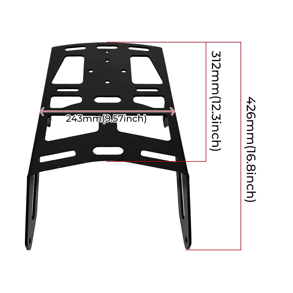 - This black luggage rack is made from high-quality 6063-T6 aluminum, 4.3mm thick, laser-cut for precision and durability, ensuring it withstands tough riding conditions and heavy cargo loads.