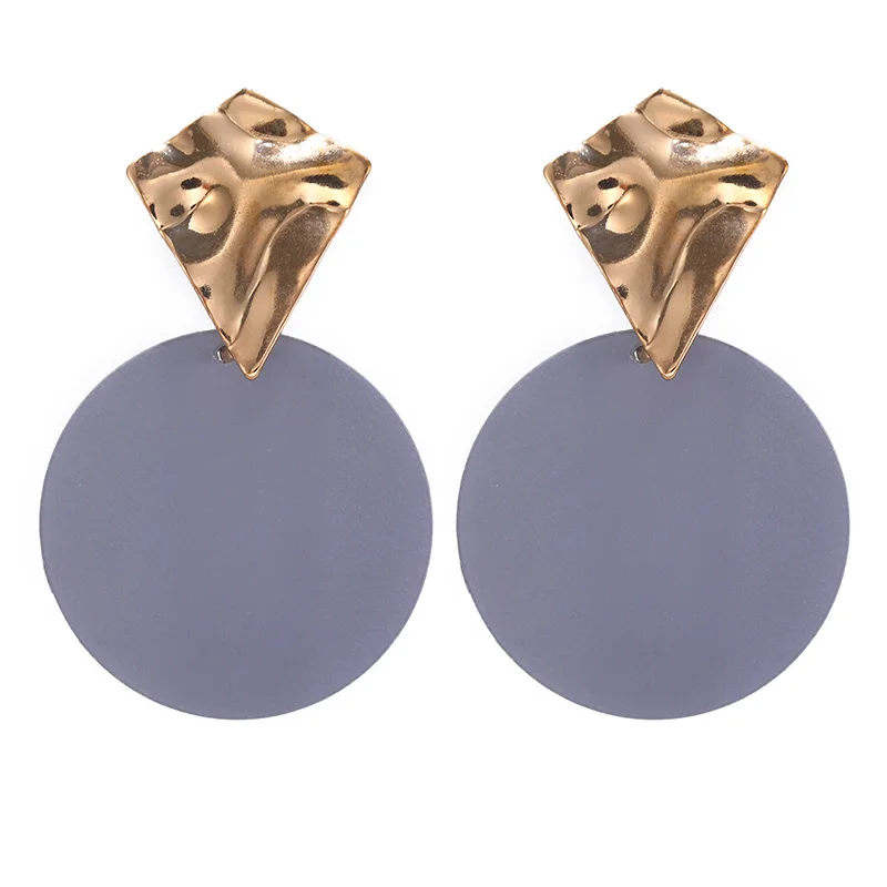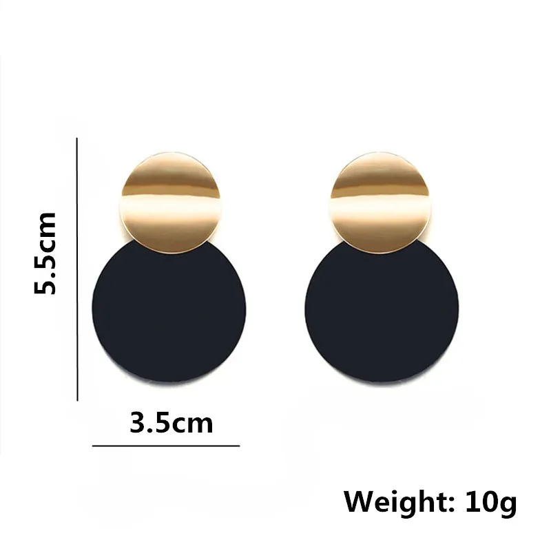 Elevate your style with these lightweight women’s drop earrings featuring a chic, round design crafted from zinc alloy. Available in multiple colors including gold, silver, yellow, lavender, and black, they showcase a striking contrast between shiny, smooth, metallic finishes and a matte, bohemian-inspired aesthetic. Perfect for parties, weddings, birthdays, anniversaries, or daily wear, these fashionable statement earrings add a bold touch to any outfit. Released in 2019, their versatile design makes them an ideal gift for daughters, mothers, lovers, sisters, or friends. Easy to wear, durable, and suitable for various occasions, these earrings bring a contemporary flair to your jewelry collection.
