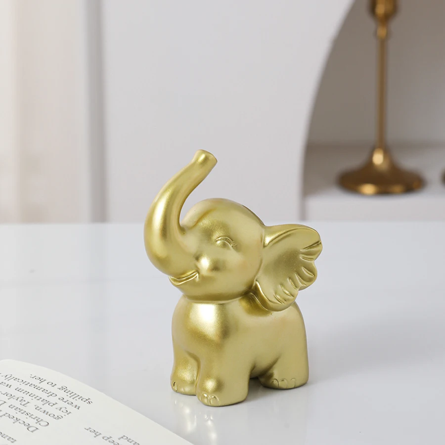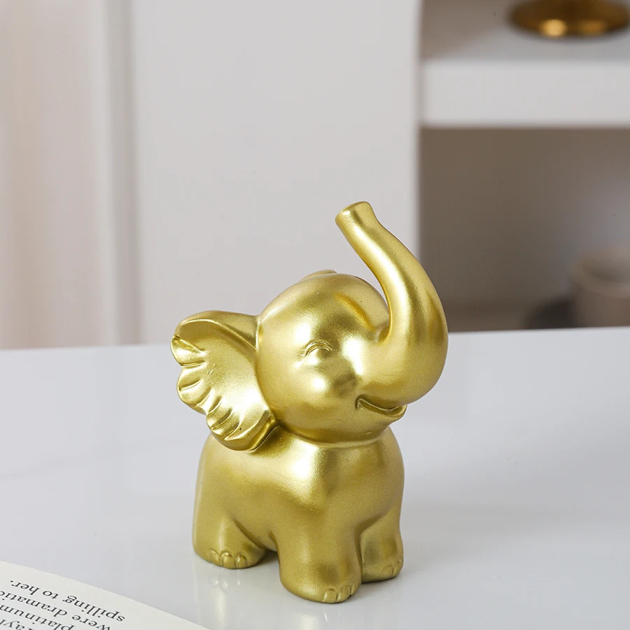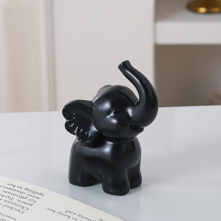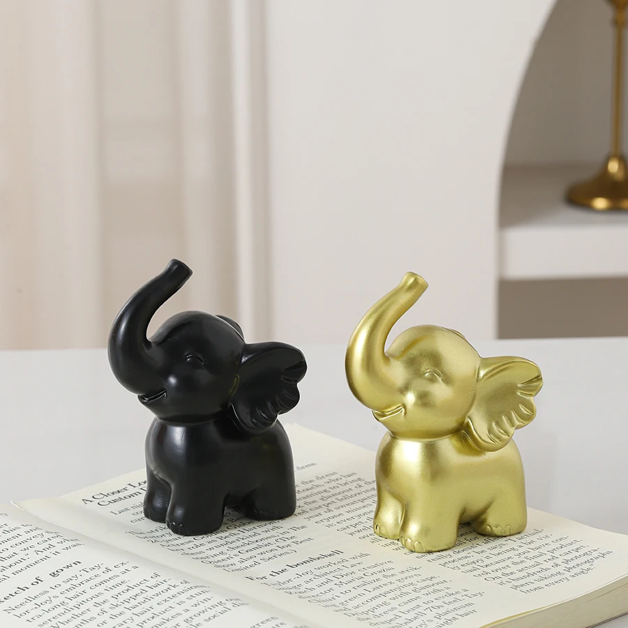 Transform your living space with this stylish and refined elephant figurine, blending modern elegance with a touch of luxury. Crafted from high-quality resin, it boasts a smooth, glossy finish that enhances its minimalist design. The monochrome color scheme, featuring matte black and metallic gold options, allows easy integration into diverse home styles—be it contemporary, classical, or post-modern. Small yet striking, this sculpture adds a lively and sophisticated focal point to any corner of your home or office. Its durable construction ensures long-lasting vibrancy, resisting wear and fading over time. Imagine the subtle elegance it brings, offering a warm, welcoming atmosphere while reflecting your refined taste. This charming piece is perfect for those who appreciate understated luxury and modern aesthetics.