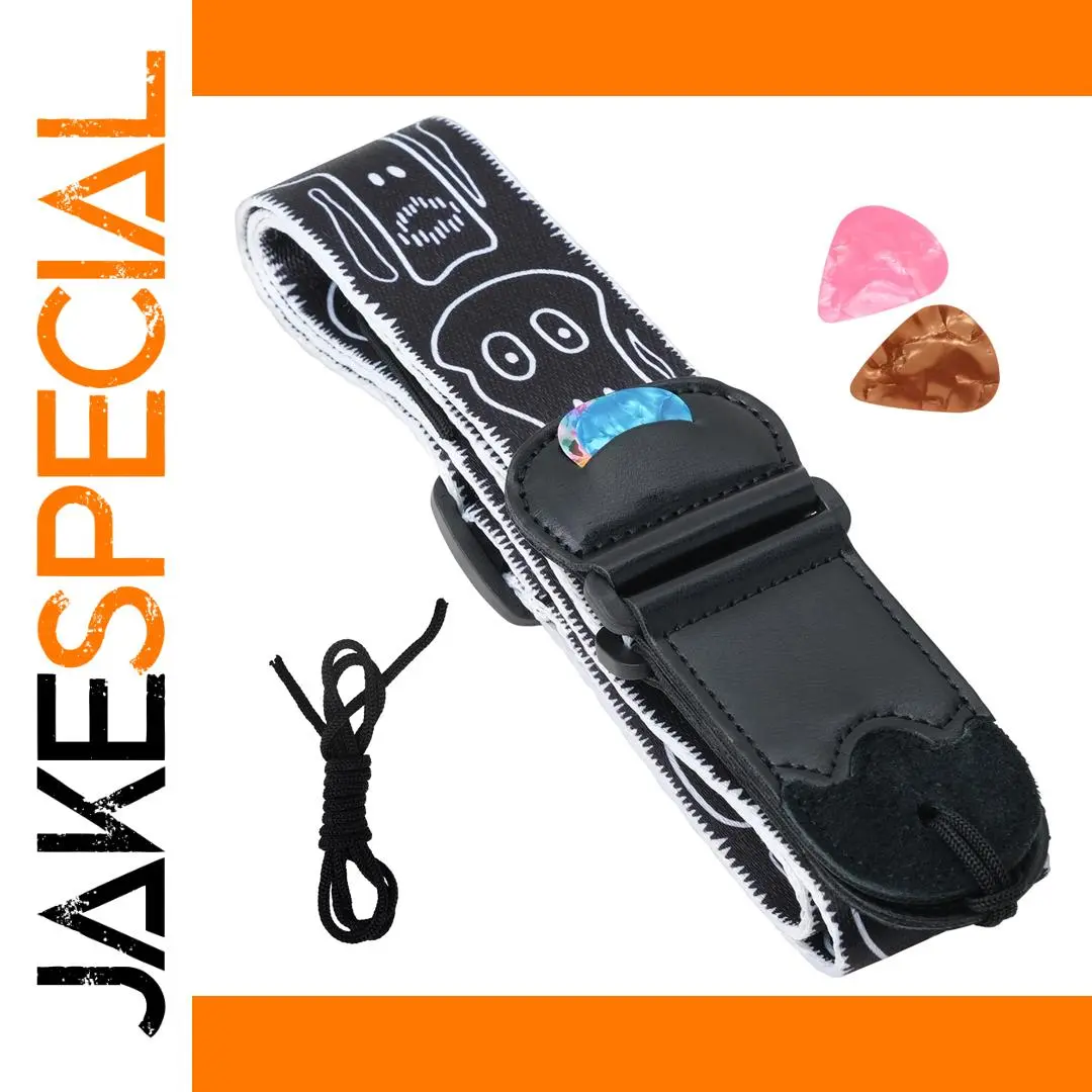 Elevate your musical experience with this unique cartoon-inspired guitar strap that showcases a vibrant black and white design. Featuring whimsical outlines of cartoon-like faces, this strap isn’t just a practical accessory; it’s a statement piece that adds personality to your performance. Constructed with durable materials and a secure locking mechanism, it promises both comfort and reliability during your gigs. The adjustable length from 94 to 158 cm caters to any playing style, while the included colorful picks and decorative clip only enhance its charm. Get ready to stand out and enjoy your time on stage with this fun and functional guitar strap.