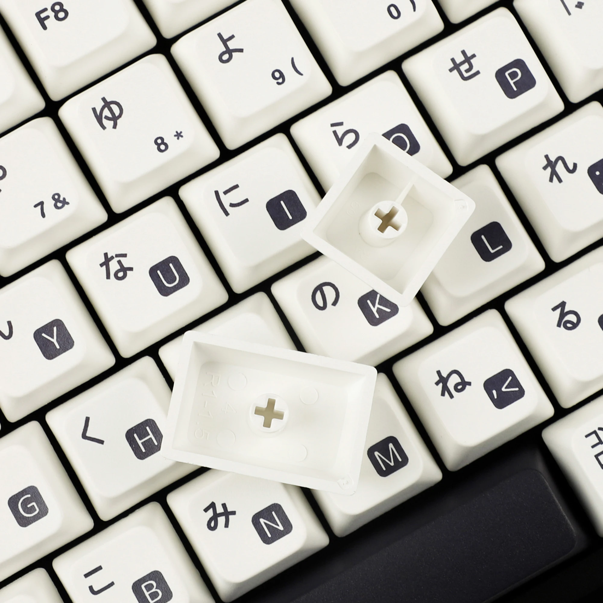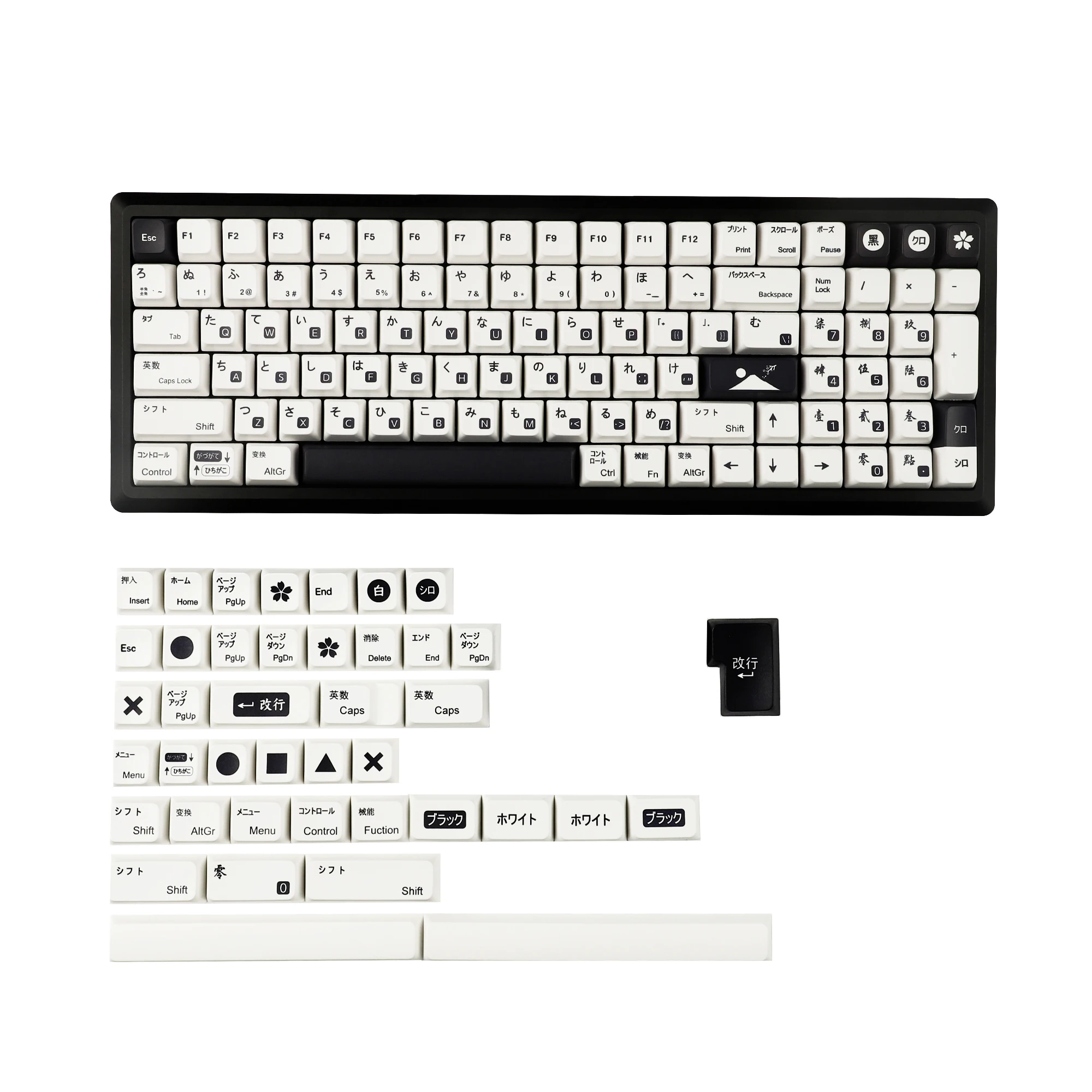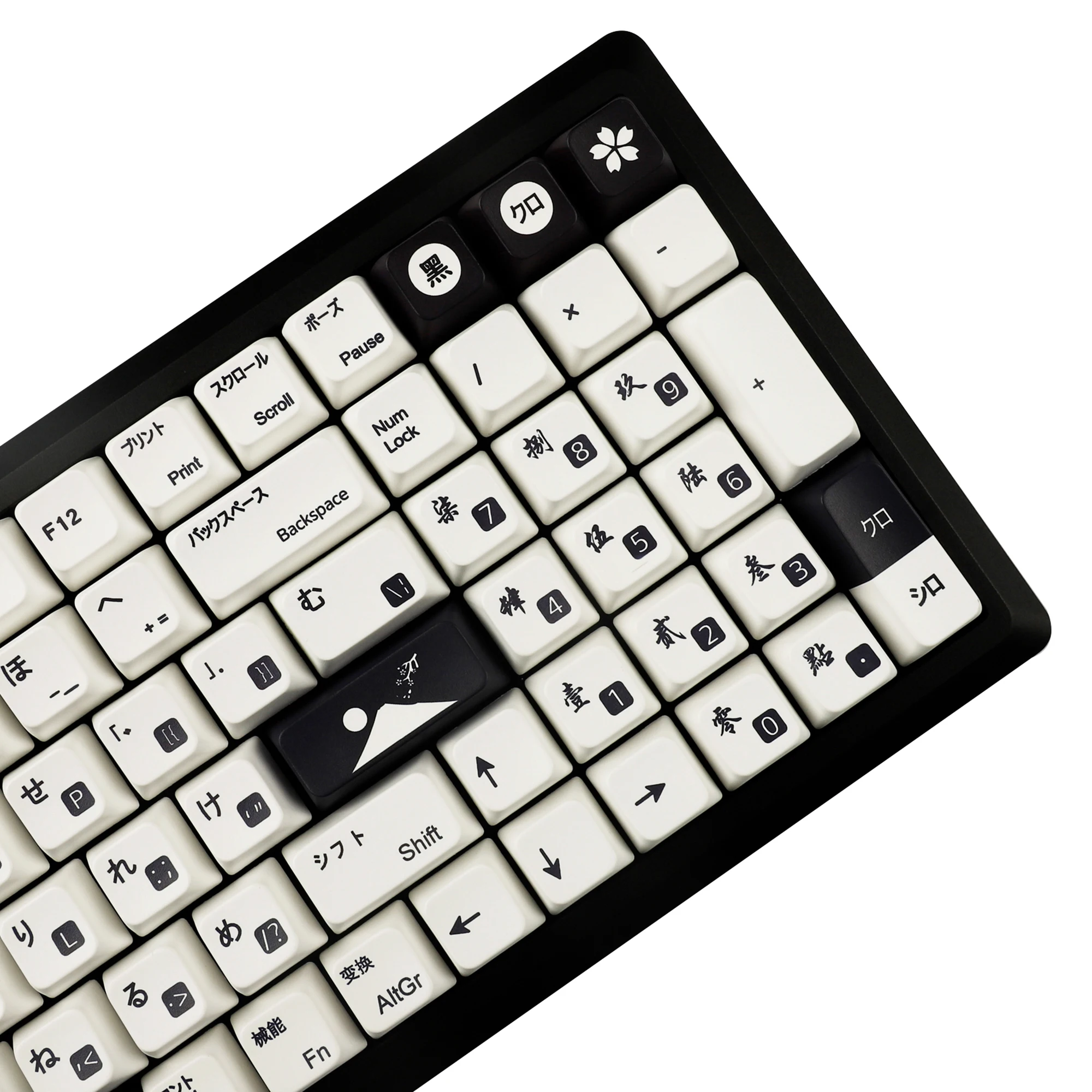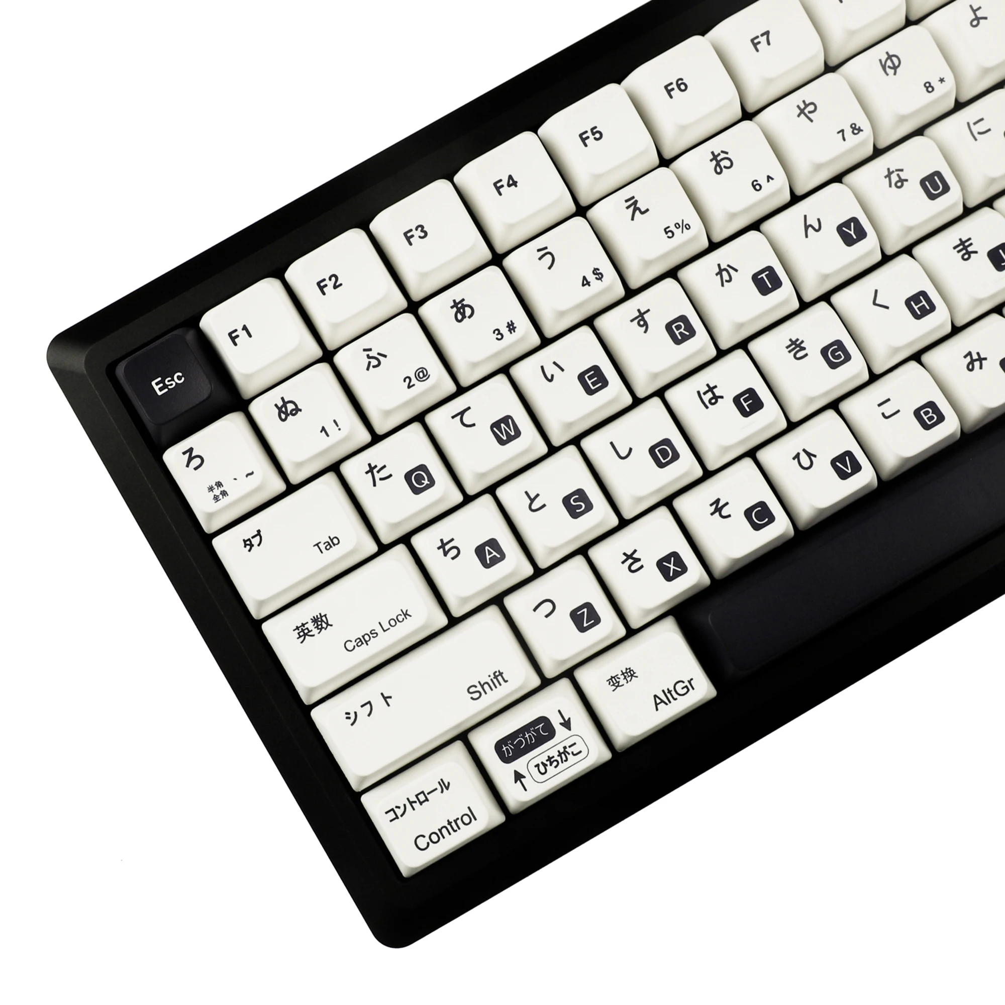 Enhance your mechanical keyboard with this set of 141 durable PBT keycaps, approximately 1.6mm thick, featuring dye-sublimation legends for long-lasting clarity. Designed in a wider, rounded MDA profile similar to OEM, these keycaps provide a comfortable typing experience and a sleek, modern aesthetic with a striking monochrome black-and-white color scheme. Compatible with most ANSI MX switch keyboards, including 61, 64, 68, 75, 84, 87, 96, 104, and 108 layouts, with a spacebar size of 6.25u (11.7cm) or 7u. Ideal for customization, offering durability, style, and an ergonomic feel for gaming and typing enthusiasts.