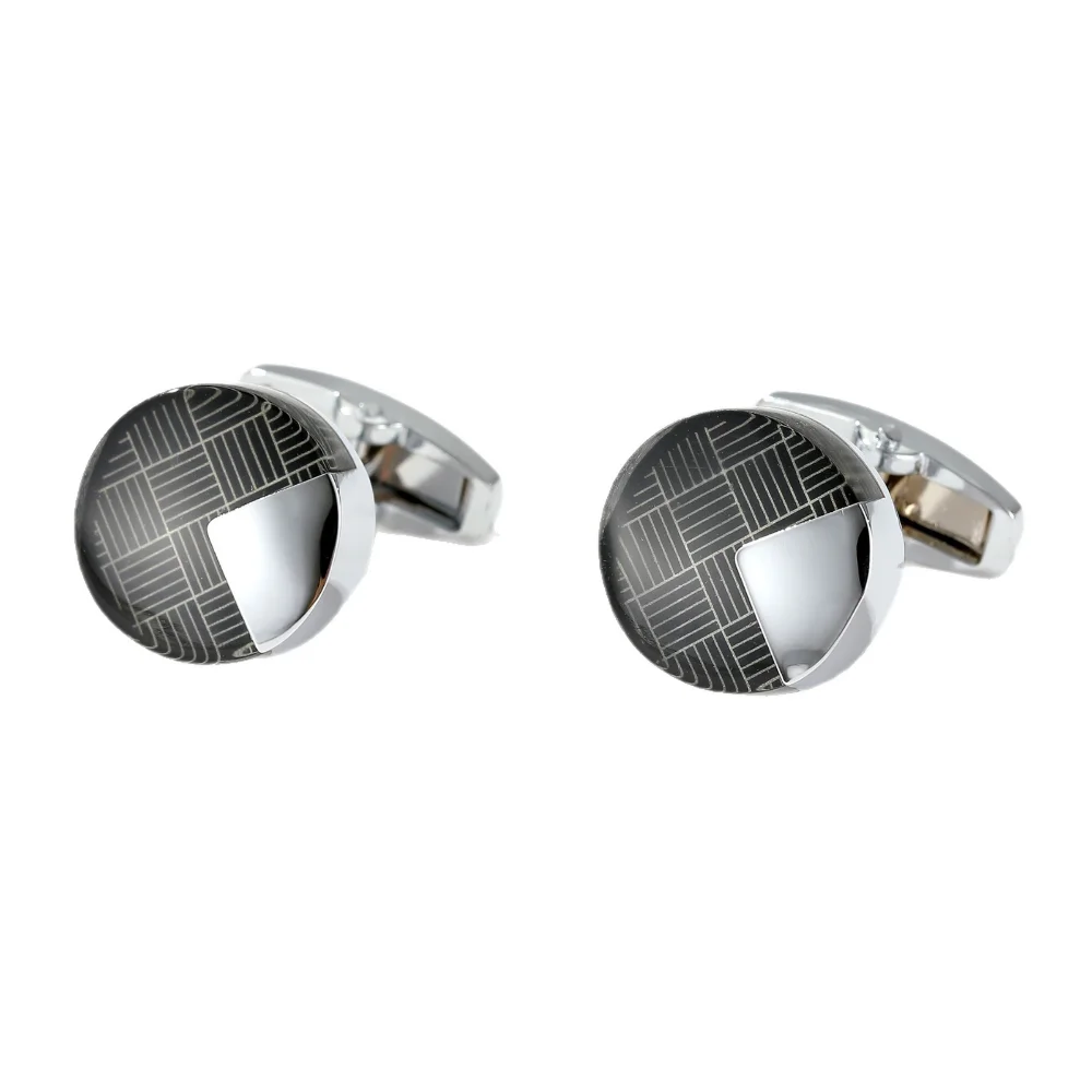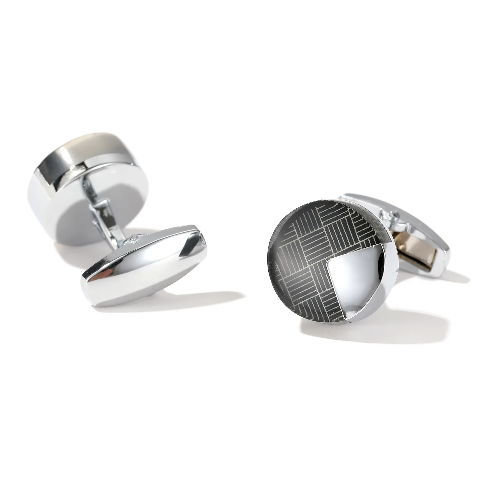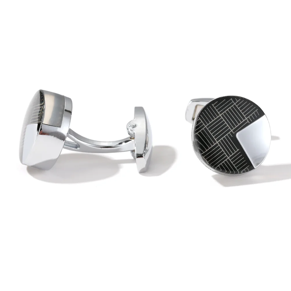 Imagine instantly elevating your outfit with these sleek, contemporary cufflinks. Crafted from durable alloy, they feature a polished metallic surface that catches the light beautifully. The face of each cufflink showcases a striking geometric grid pattern in black and white, arranged in a structured rectangle and square layout for an eye-catching contrast. A smooth metallic segment adds a minimalist touch that harmonizes with the intricate design, making them suitable for any occasion—whether formal, casual, or trendy. Their universal unisex style ensures they complement both men's and women's fashion. Measuring approximately in size as shown, they are easy to wear and provide a refined finish to your shirt cuffs, jackets, or DIY projects. These versatile accessories combine modern aesthetics with timeless appeal.